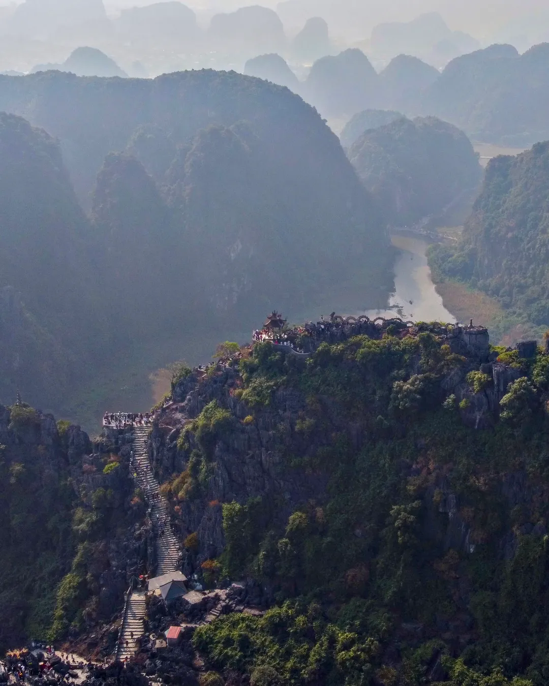Mua Caves (Hang Mua) offers one of the most rewarding viewpoints in Ninh Binh - but it’s not an easy stroll. The climb involves around 500–600 steep steps, so take it slow, especially if you’re visiting with kids. It’s not suitable for small children, and during busy hours it can feel crowded and a bit unsafe.