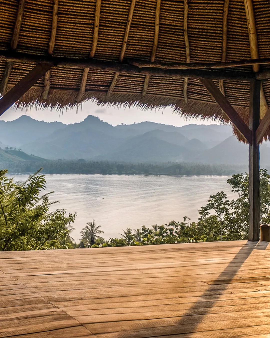 Open-air wooden yoga shala