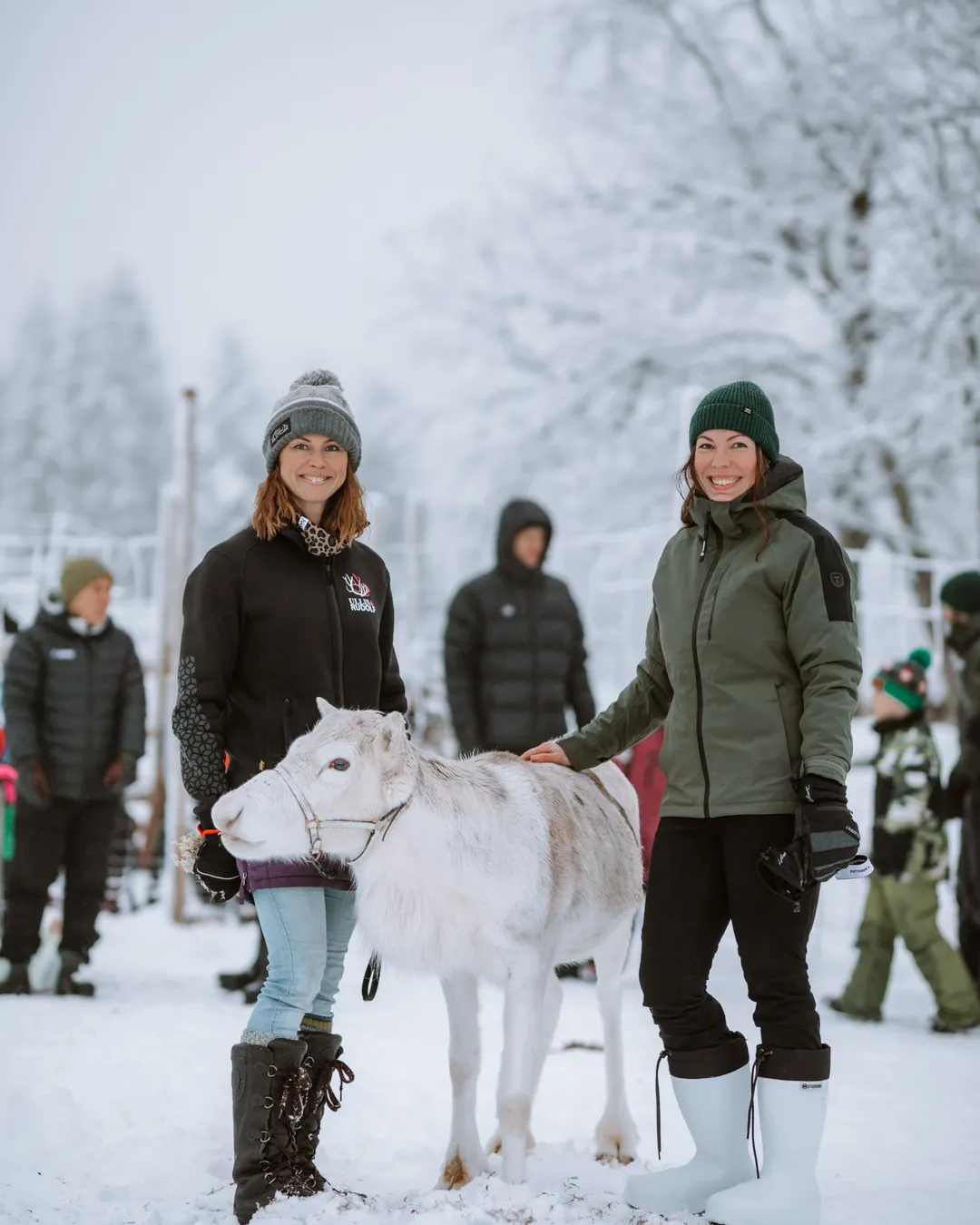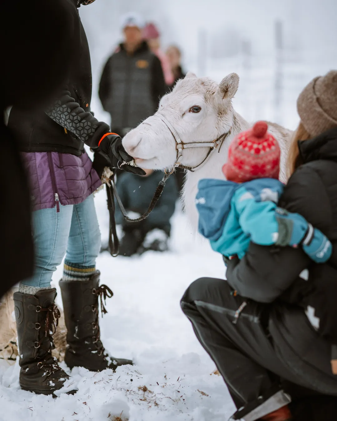 Feed and pet reindeer