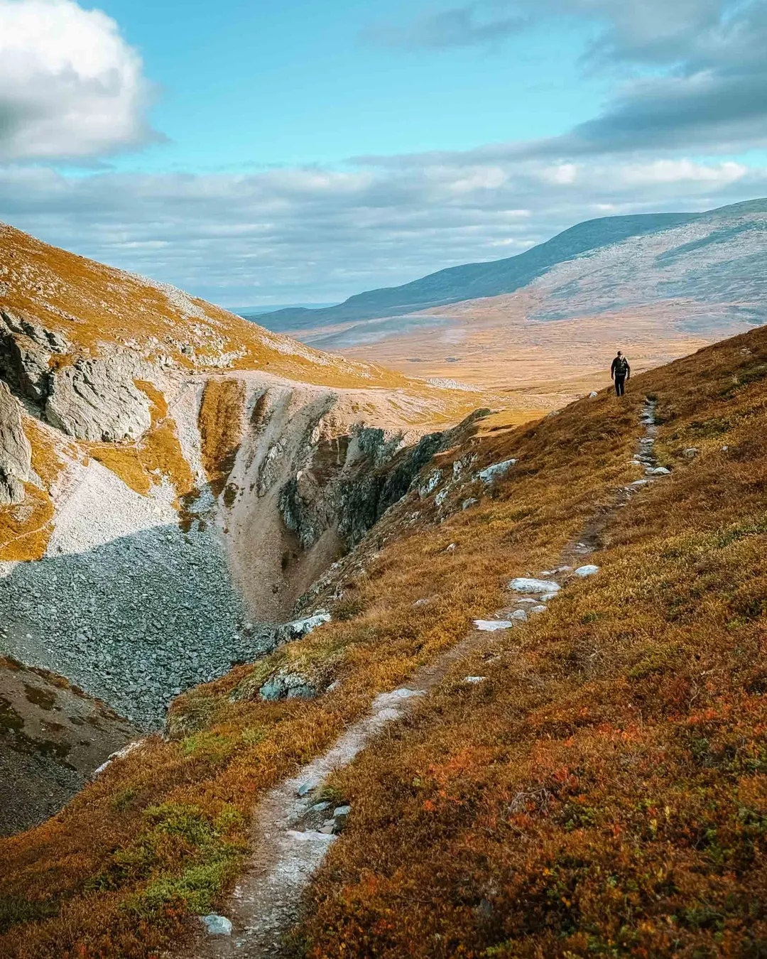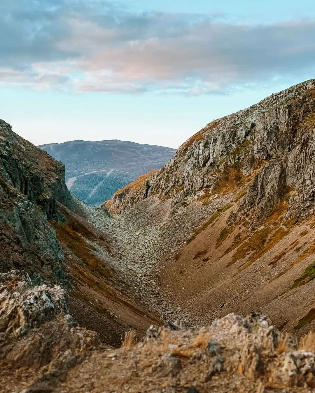 Dromskåran is a spectacular canyon located in Oviksfjällen, formed by a glacial river. This impressive natural formation cuts deep into the mountain Drommen, creating a dramatic landscape that feels straight out of another world. The trail starts at the Dromliften ski lift in Bydalen, and from there, the path climbs steadily almost all the way up. As you hike, you’ll be rewarded with sweeping views over the surrounding fjälls.