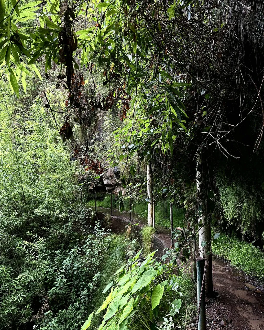 După aproximativ 4-4,5km poteca se bifurcă în față sau la dreapta pe scari. Dacă mergeți în față e strict pentru priveliștea de ansamblu asupra defileului pentru că la un moment dat poteca se oprește și veți fi oricum nevoiți să vă întoarceți pentru a urca cele 3 rânduri de trepte (singurele de pe traseu). Sus veți vedea în dreapta un panou cu roșu pe care scrie că există posibilitatea să cadă pietre, evident pe vreme rea când cel mai probabil traseul oricum se închide, dar fiți totuși vigilenți. În partea stângă puteți merge cei 400m până la un mic baraj de colectare al apei, dar de acolo e fundătură. Fie vă întoarceți și mergeți pe poteca de după panou pe Levada Nova, fie o alegeți din prima și nu mai mergeți până la barajul respectiv.