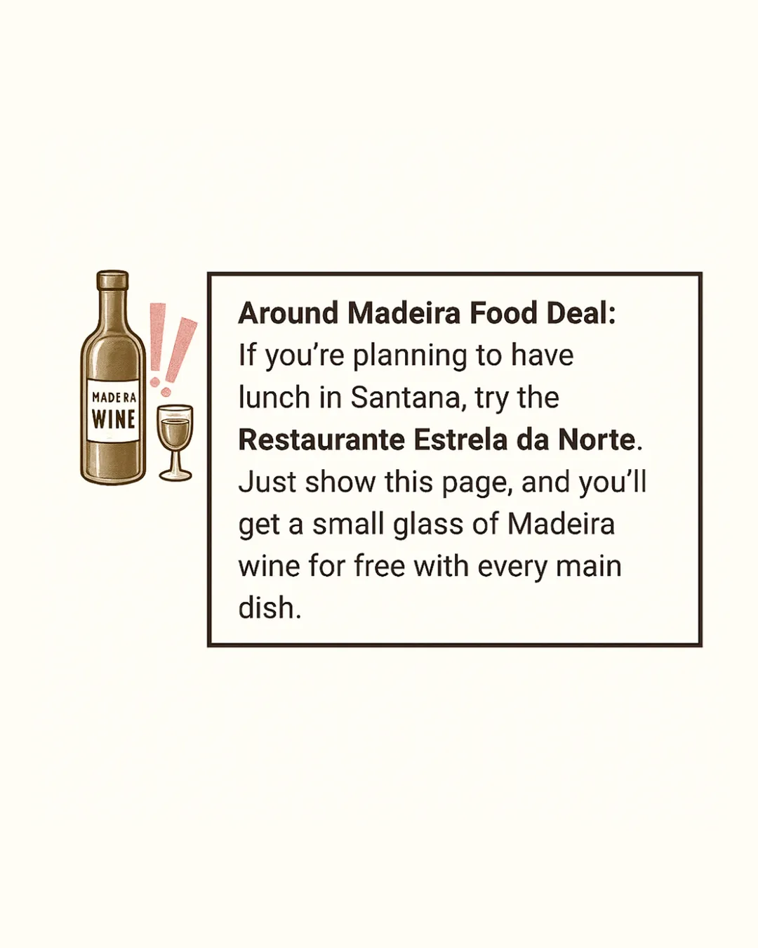 Around Madeira Food Deal: Show this page at the restaurant and you’ll get a small glass of Madeira wine with every main course you order.