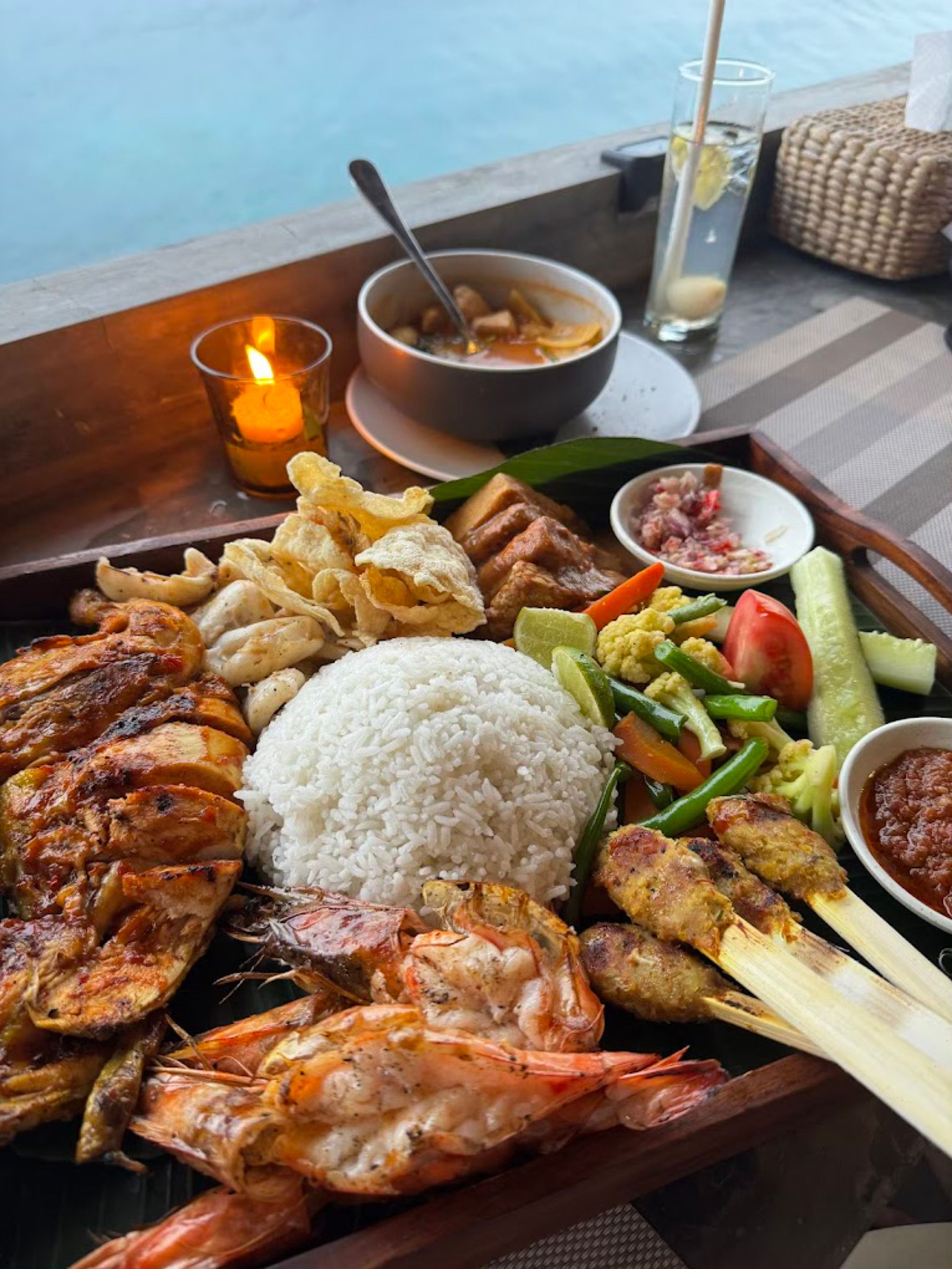 Fresh seafood with sunset view