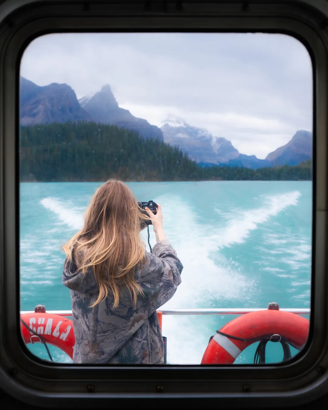 Malign Lake Cruise to Spirit Island: I recommend booking a morning tour for the best weather! and conditions for photos. It is also less busy when you return to explore the shop. Expect no cell phone service here.