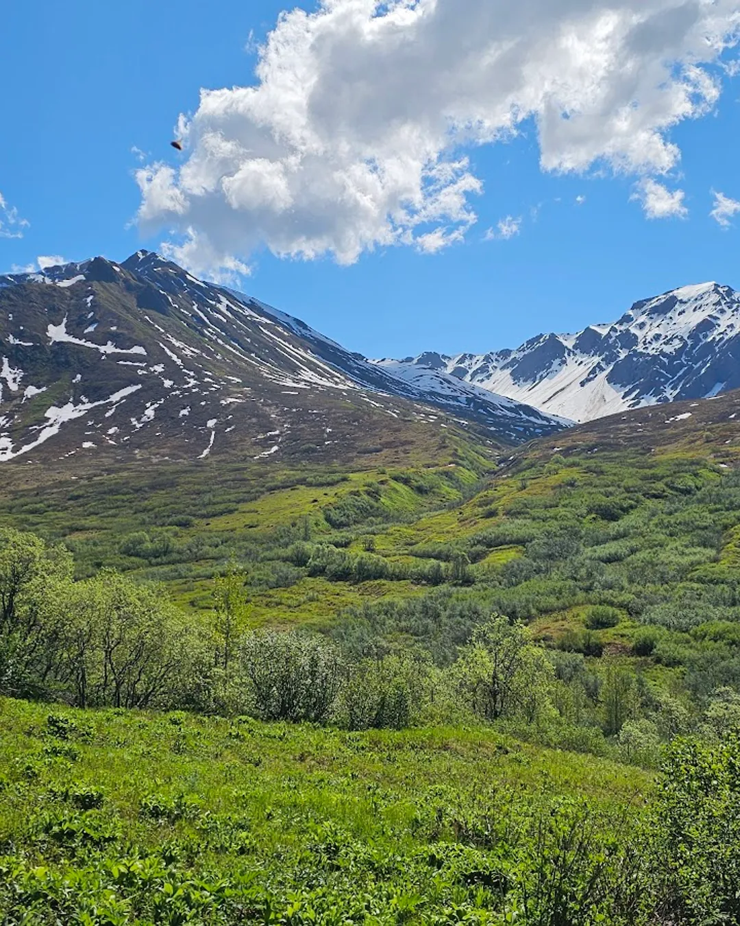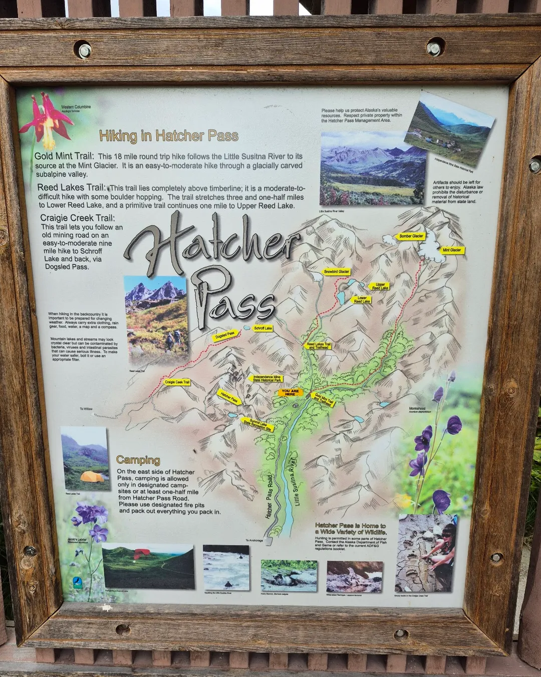 I LOVED THIS TRAIL. Gold Mint Trail is about 90 minutes north of Anchorage. Hatcher Pass has a lot of incredible trails to hike and backpack. The parking lot allows day-use or overnight camping for a small fee that you pay at the Kiosk located near the entrance to the trailhead parking lot. This trail is also dog-friendly, which is the best part, obviously 🐶