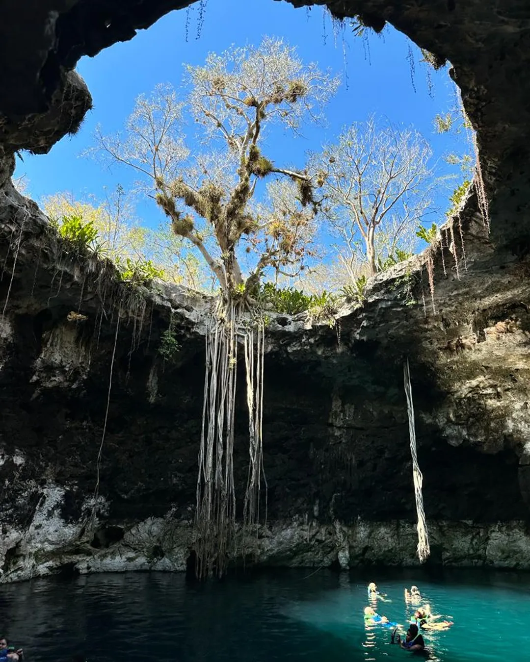 Entry is usually around 300 MXN per person, which includes access to all three cenotes and transport between them on a bike, horse-drawn cart or motorised trolley, which honestly makes it part of the experience. Our tip is to go earlier in the day so you can take your time swimming and avoid bigger tour groups, and bring water shoes as the paths can be rocky. The water is insanely clear, perfect for floating and photos, and it’s one of those spots that feels like great value for how much you get to see in one visit.