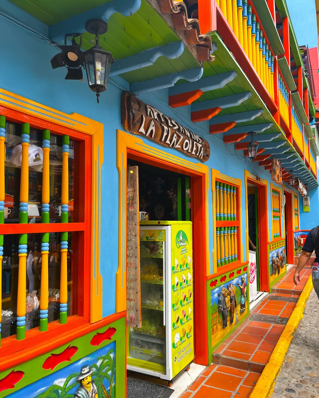 Guatapé instantly charmed us with its colourful streets and vibrant lakeside views. This small town near Medellín is famous for its zócalos — the decorative murals on every building — and the epic Piedra del Peñol rock nearby.