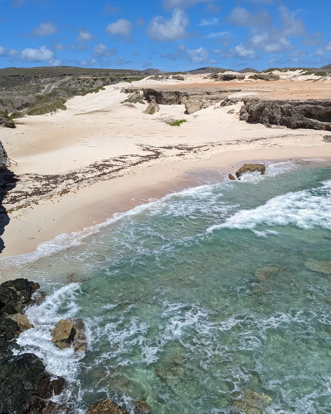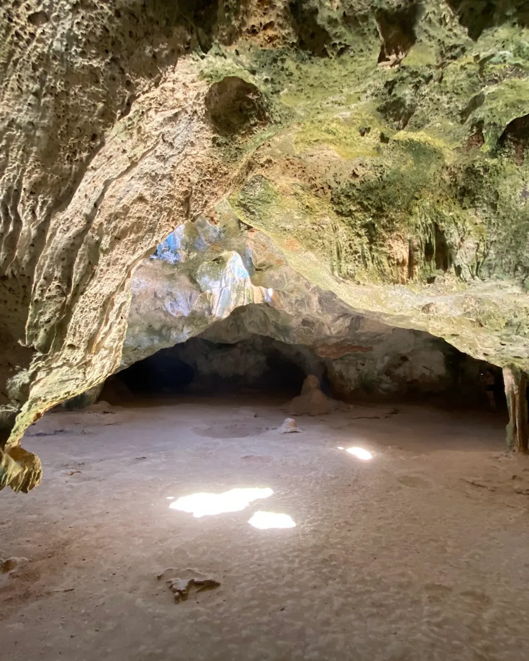 Arikok is actually on Aruba, so when you visit expect a dry, rocky landscape with short but sometimes steep hikes, several caves like Fontein and Guadirikiri with Arawak rock art, and the rugged natural pool called Conchi that is best reached by high-clearance vehicle or a guided 4x4 tour. Buy your park pass at the visitor center or entrance, go early to avoid midday heat, bring plenty of water, sun protection and sturdy shoes, and keep swim sessions short and cautious because surf and currents can be strong. Trails and backroads are uneven and dusty, so if you do not have a suitable vehicle join a guided trip; stay on marked paths to protect fragile wildlife and cultural sites.