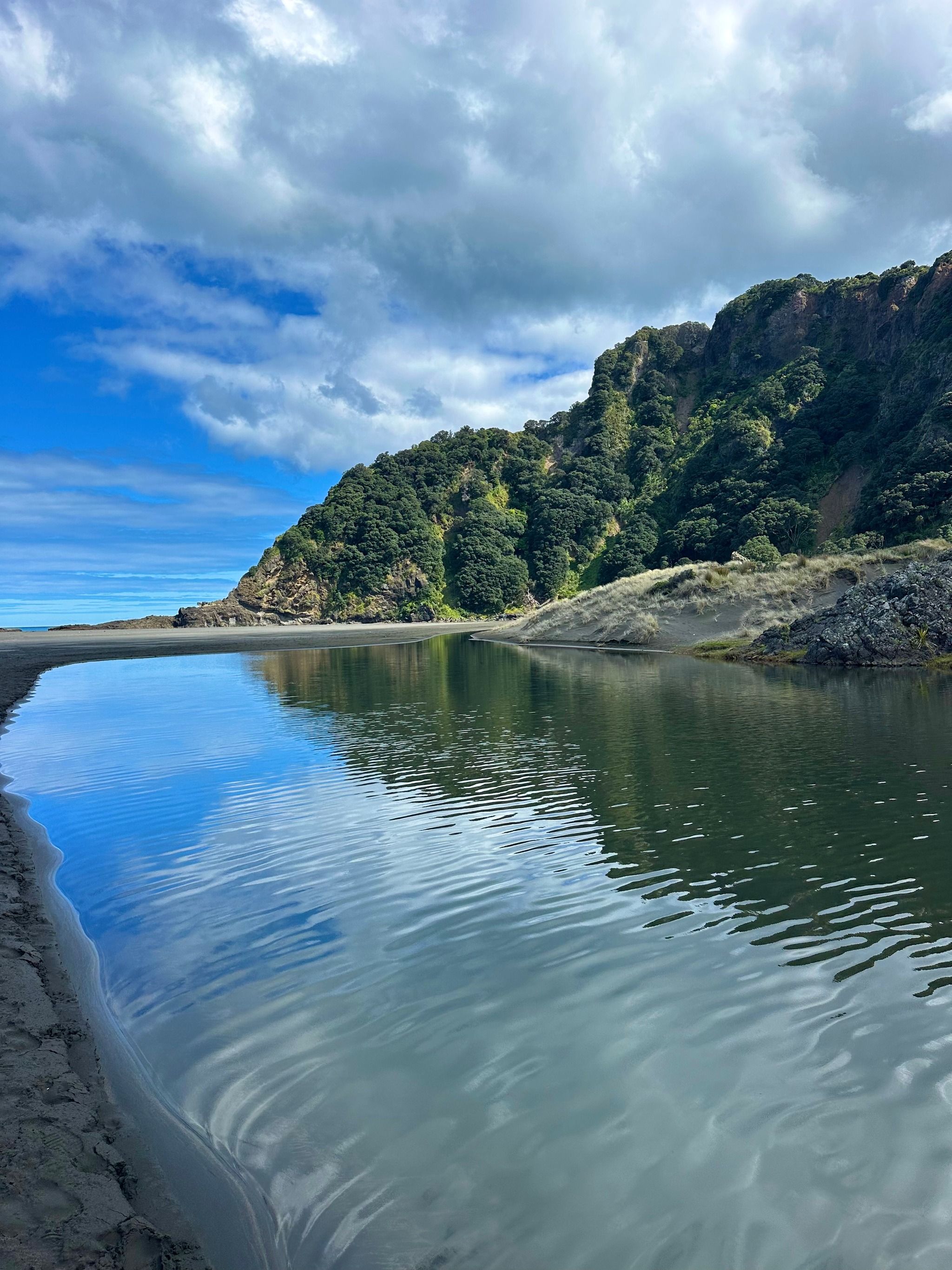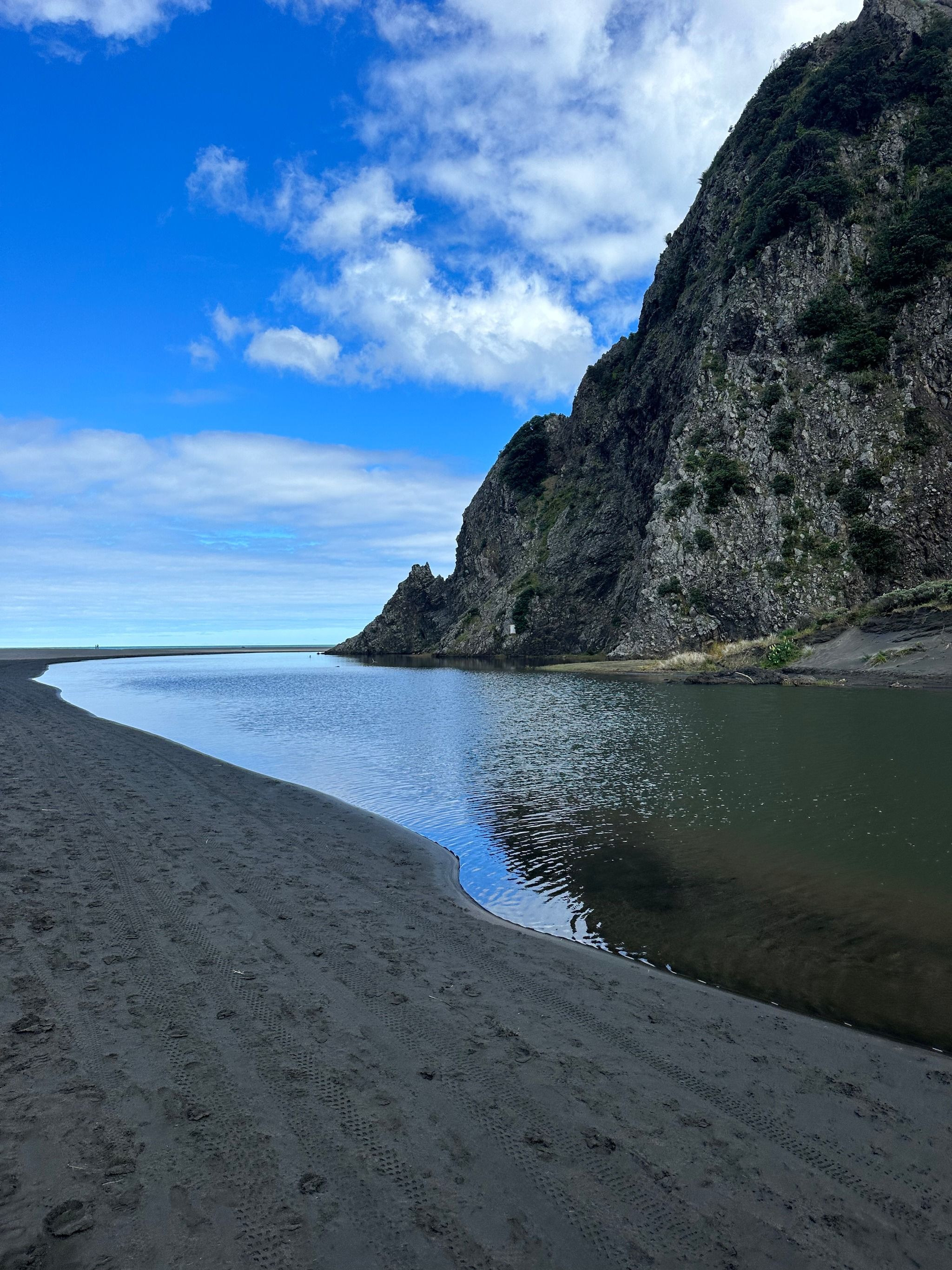 Dramatic black sand beach