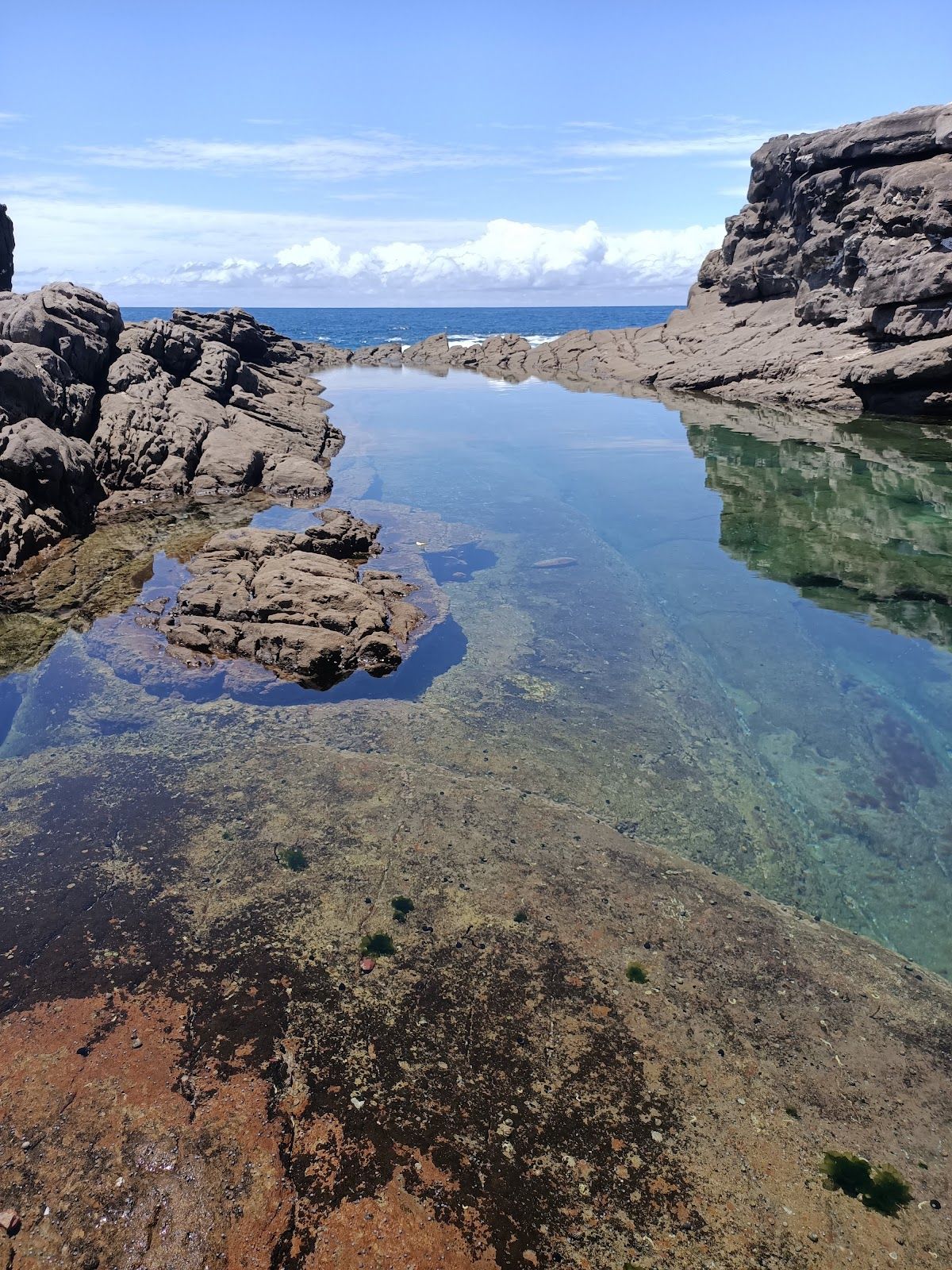 At the end of the trail, you’ll need to carefully scramble down a rocky section. It’s manageable, but keep an eye on your footing and take your time. Once you reach the rock pools, you’ll be greeted with breathtaking views of the horizon and crystal-clear, jade-colored water. For the best experience, wear sturdy footwear to navigate the rocks and try to visit at high tide to fully enjoy the ocean-fed pools.