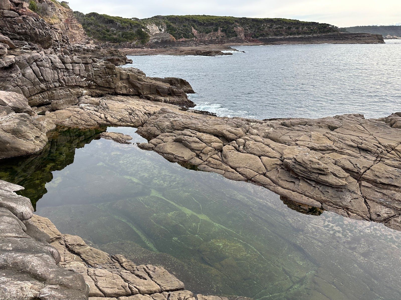 Tura Beach Rockpool is truly a hidden gem on the South Coast, that I’m excited to share with you. On the day I visited, the weather was overcast, so the photos I took don’t quite capture the pool’s full splendor. But just imagine how vibrant and stunning these rock pools would look under a bright sun! The area features several rock pools, each offering a unique experience depending on how adventurous you're feeling. To find these pools, park at the small carpark at the start of the Tura Headland Walk. From there, follow the trail, which is about 900 meters long and should take you around 10 minutes to walk. Along the way, you’ll pass a lookout with some beautiful views, so take a moment to enjoy them too.