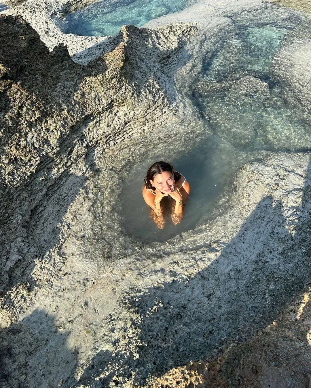 Here's the deal: You've got to time it right. High tide is when the lagoon comes alive with locals and tourists floating downstream on tubes, having a blast. And let me tell you, the clay and mud under the water was so entertaining to me. It dries white on your skin, so naturally, I couldn't resist turning myself into a walking art project!