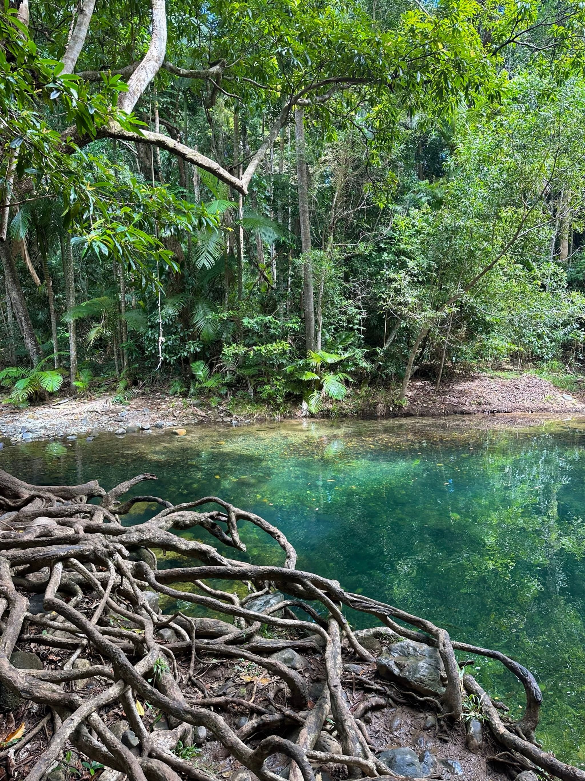 Once you’ve navigated the road and parked up, you’ll need to tackle a short, muddy walking track, about 200 meters. It’s flat and easy, though the mud can be a bit slippery. But the reward at the end is worth it, an incredible freshwater swimming hole that’s pure bliss.