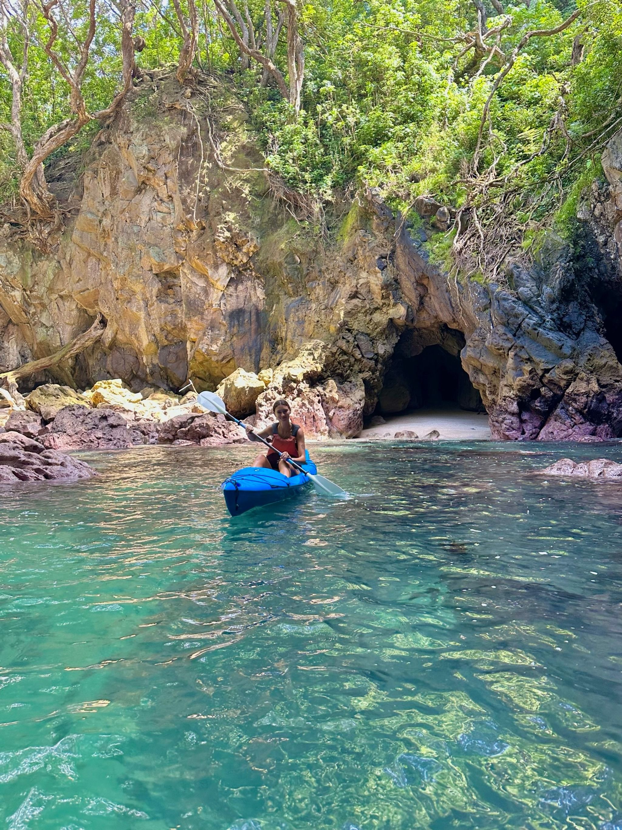 Once you're all set, it’s about a 20-minute paddle out to the island. The best part is when you make your way through a cave that opens up to the round hole in the centre of the island, which is how it got its "Donut Island" nickname. The water inside is stunning, and I’ve seen pictures of people jumping in for a swim!