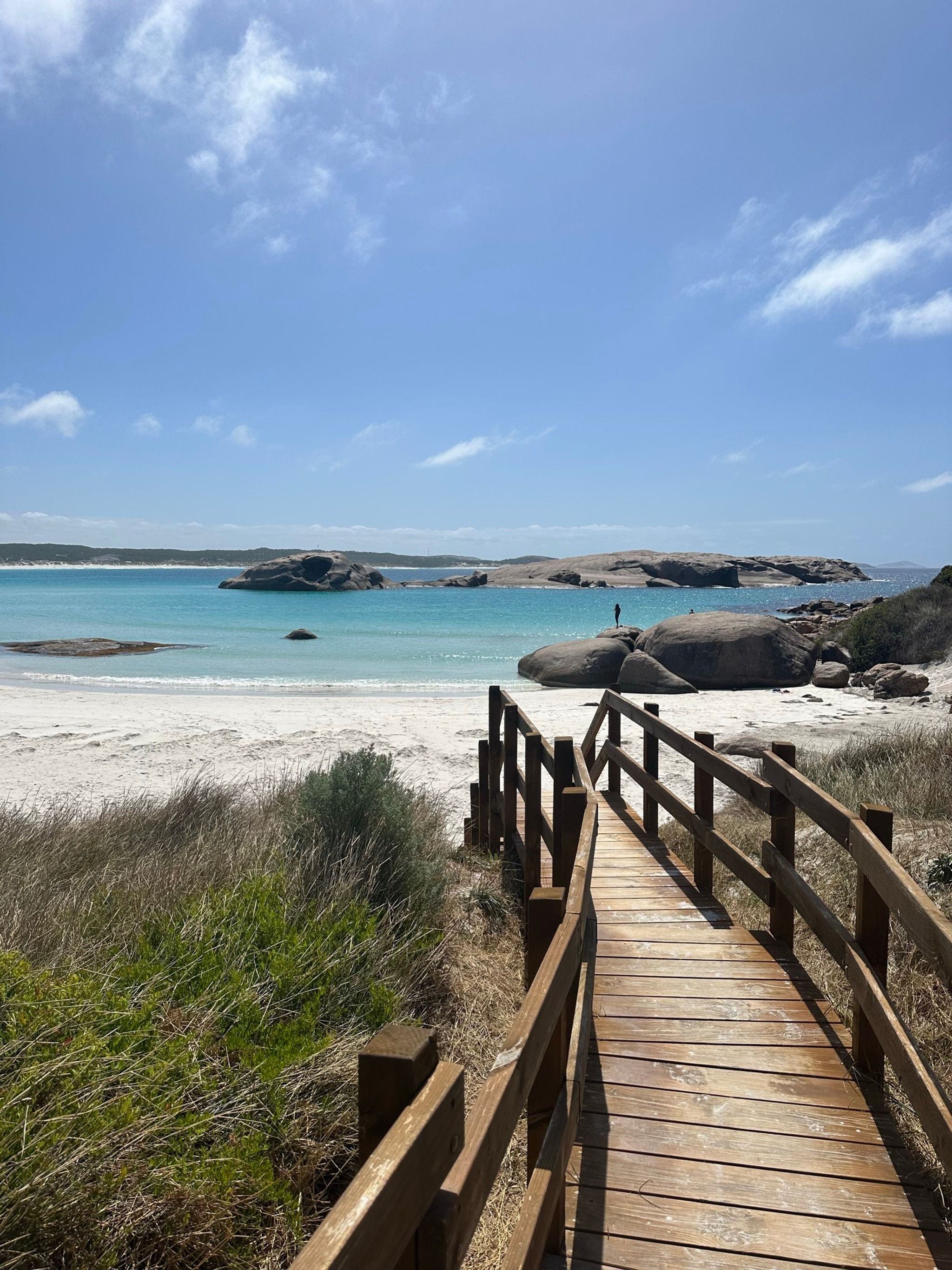 Twilight Beach in Esperance holds a special place in the hearts of many, and it's easy to see why. This beach truly embodies a postcard-perfect paradise with its pristine white sands, clear turquoise waters, and dramatic granite rocks framing the shoreline. As soon as you arrive, you're greeted by a serene ambiance that invites you to unwind and soak up the sun.