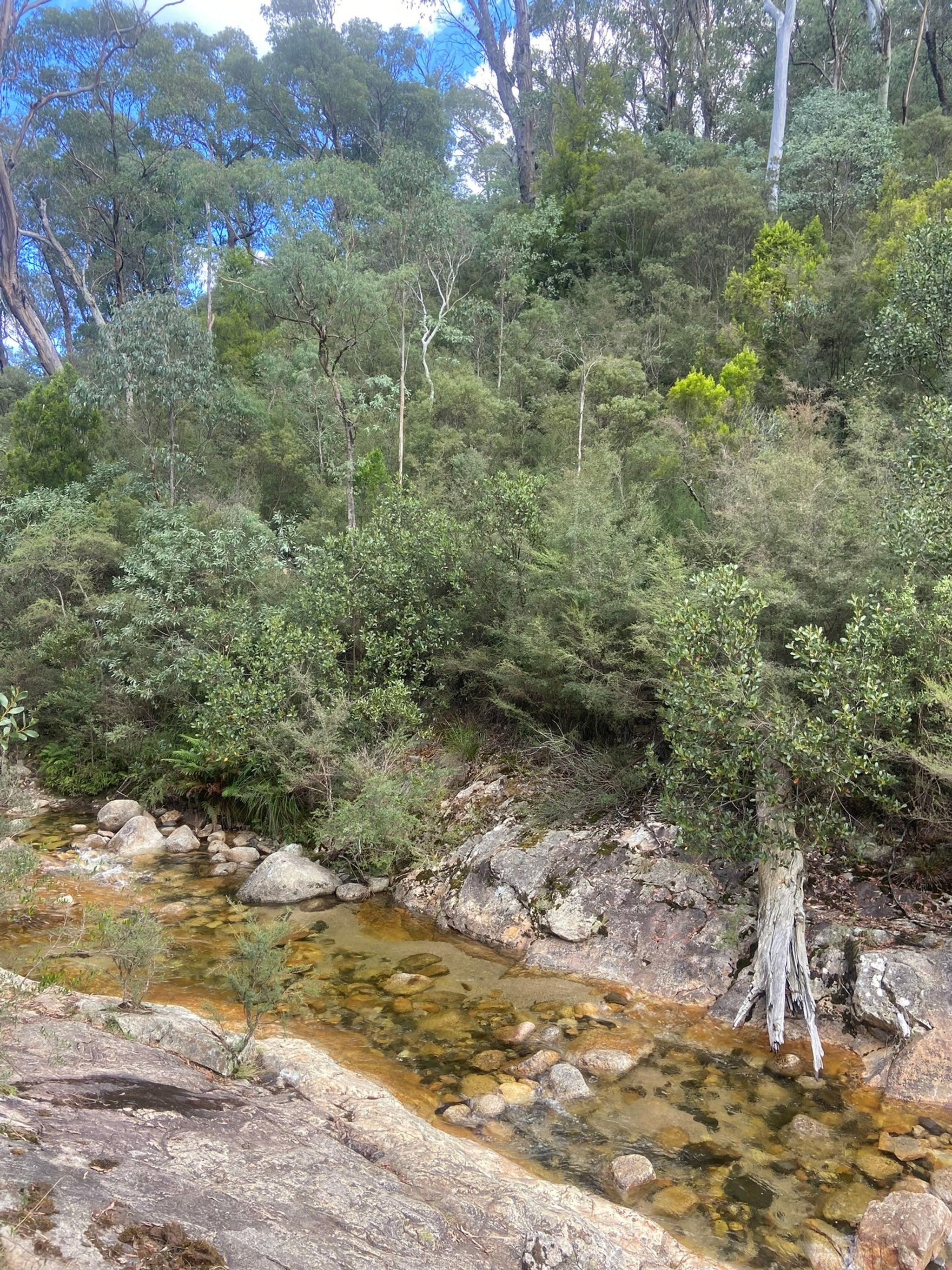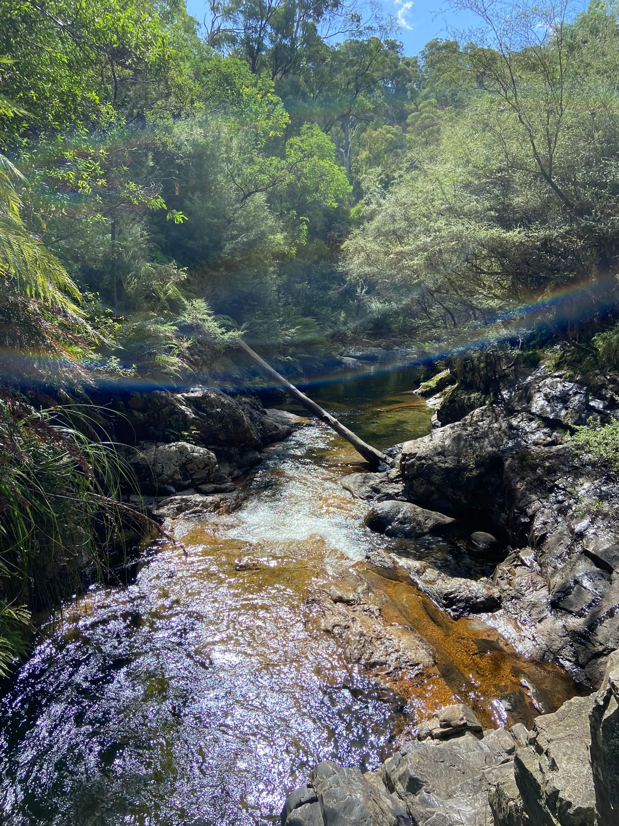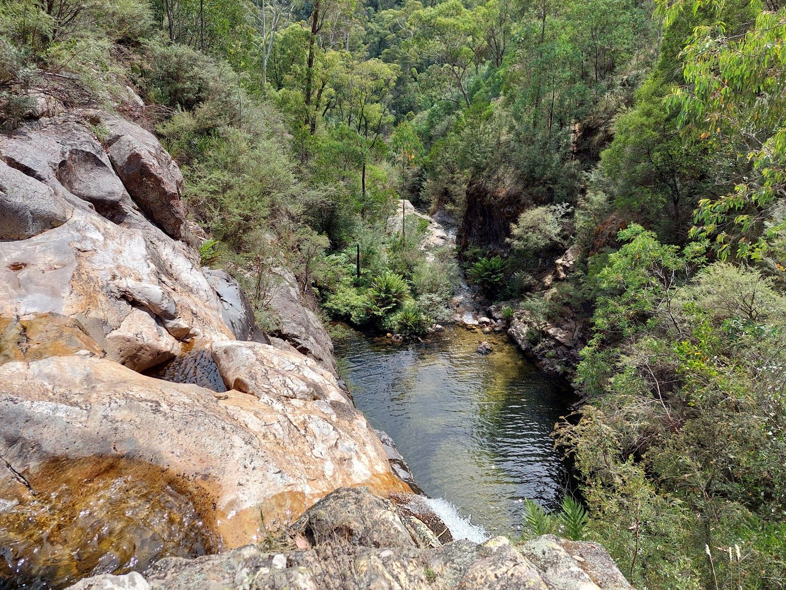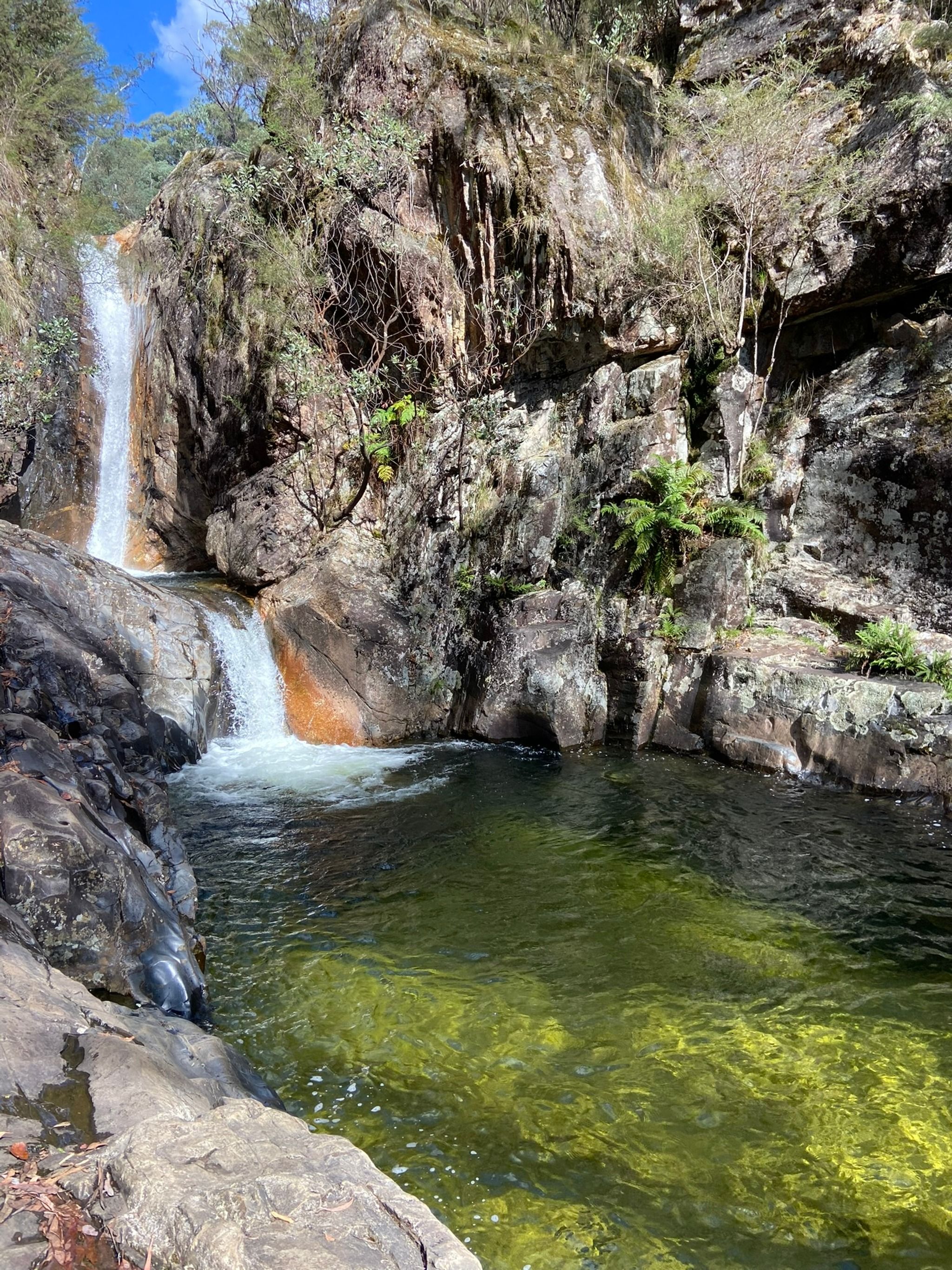 Rollasons Falls are the perfect example of why I think Mount Buffalo National Park has some of the clearest waterfalls in all of Australia. Exploring this place was such a delightful experience. The track to the falls is 1.9 kilometers (one-way) from the picnic area and is super easy and family-friendly. As you walk, you’ll meander through lush bushland, soaking in the natural beauty all around. The trail takes you to a T-intersection, where you get to choose your own adventure: go left to see the top of the falls or right to discover the lower falls and a refreshing swimming hole.
