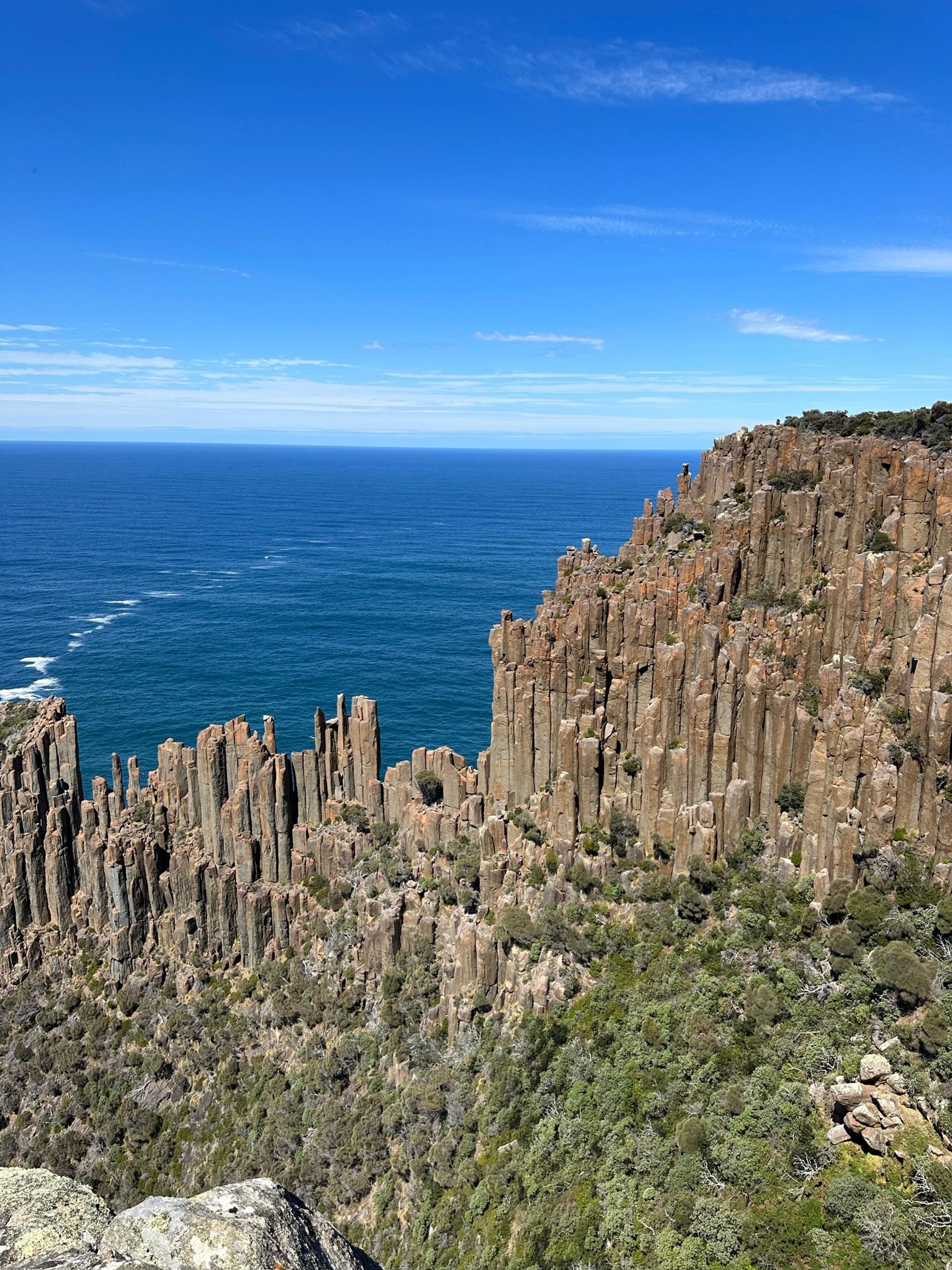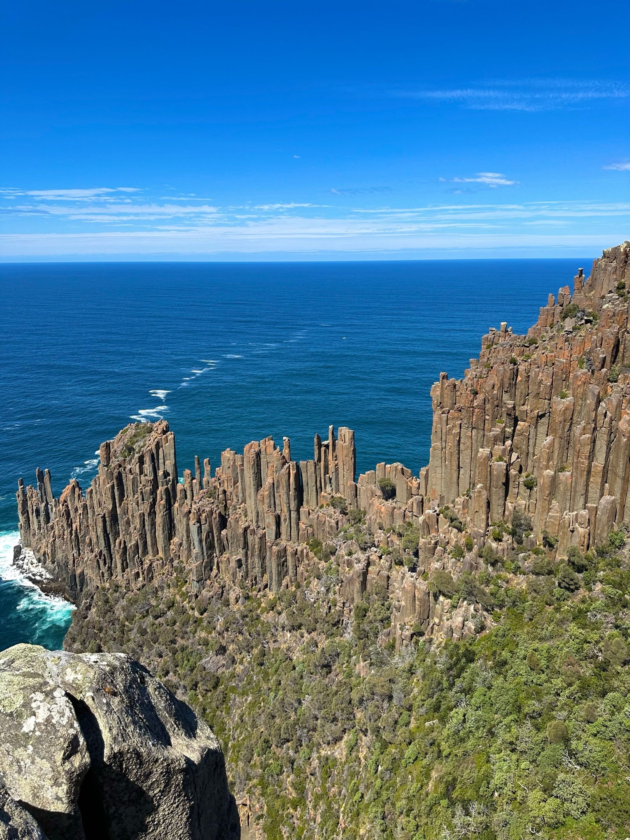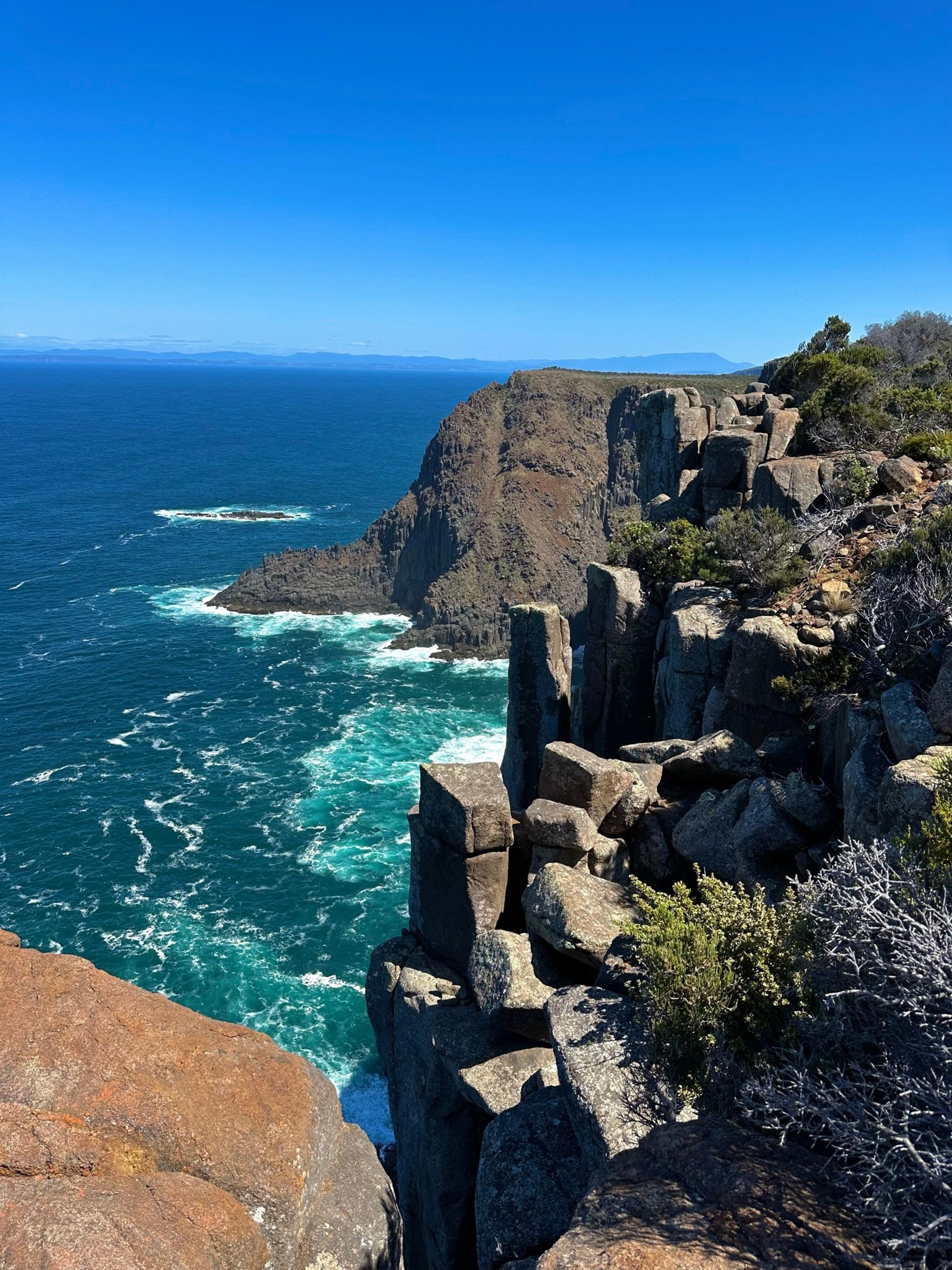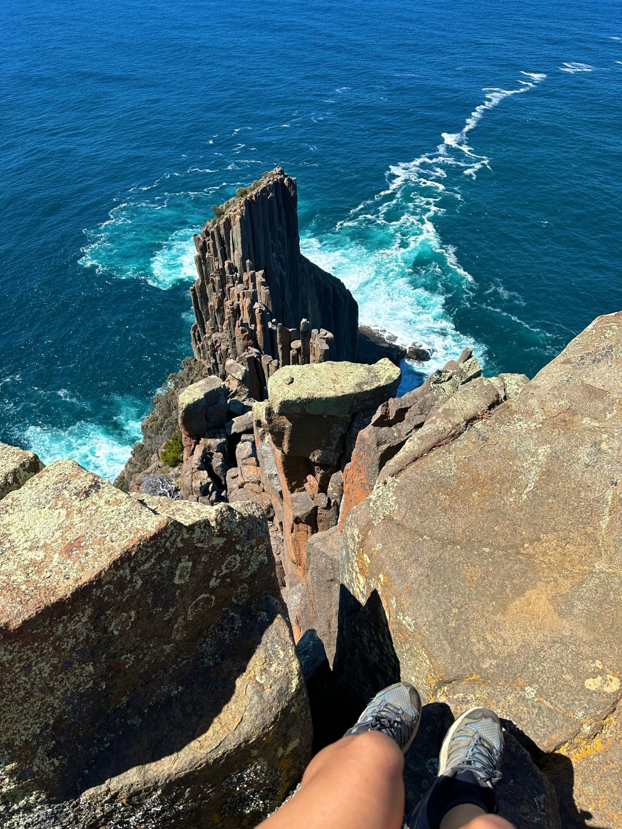 When you finally reach the end of the track, you’ll find two amazing lookouts. First up is the Cape Raoul viewing point, where you’ll get a direct view of the rock formation that seems to shrink as it recedes into the distance, it's a bit tricky to describe, but the photos I’ve added should help clarify. The second lookout, Seal Rock, offers a side view of the entire formation, which is mind-blowing. I even saw some rock climbers scaling the cliffs, which was such a special sight.