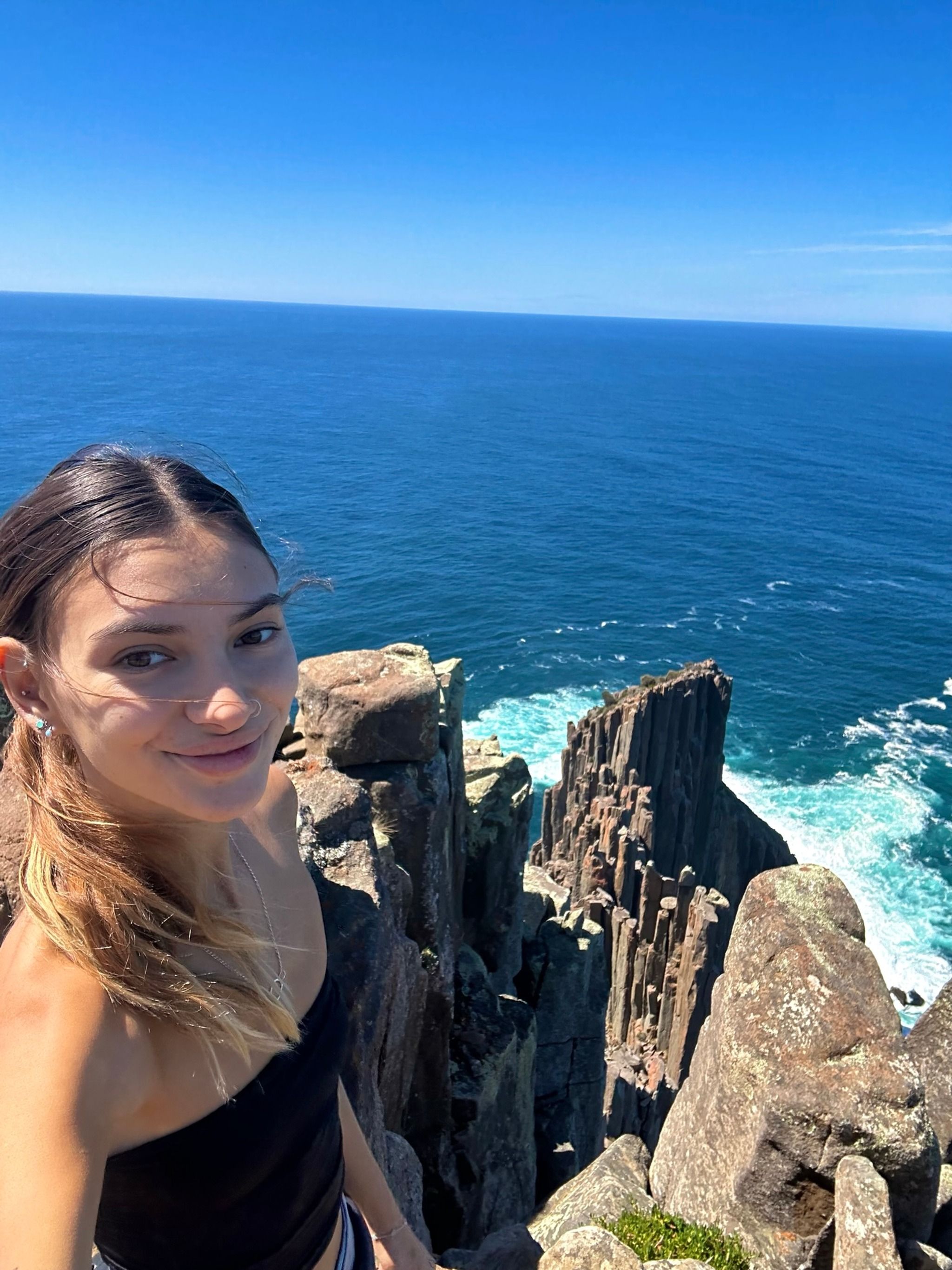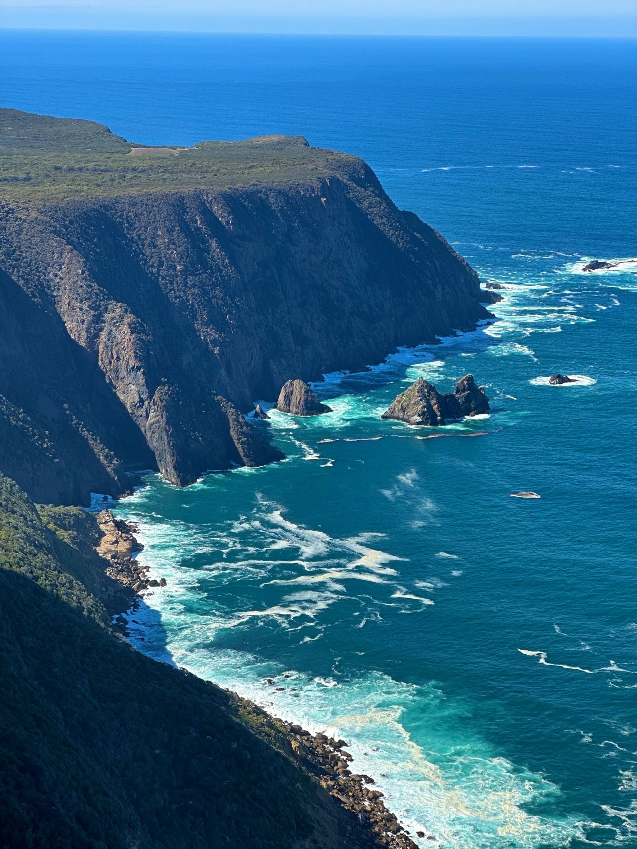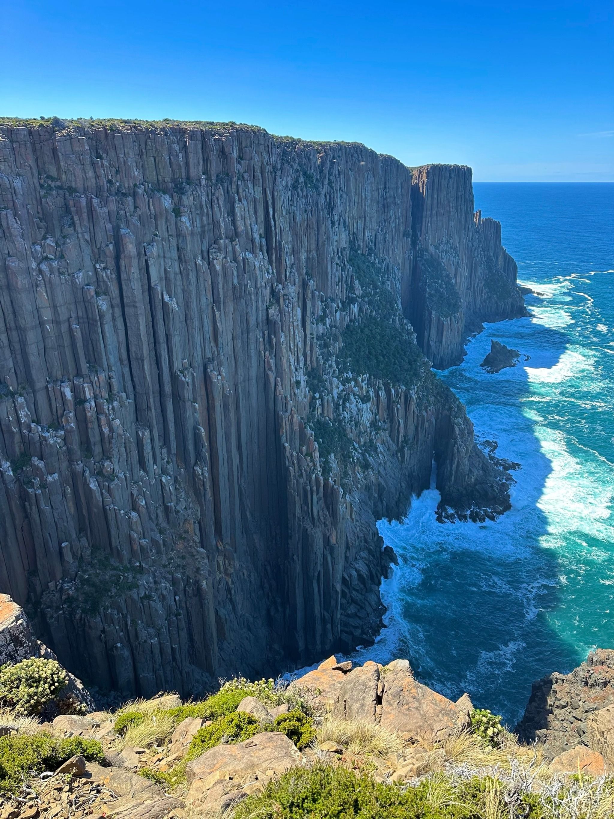 When you finally reach the end of the track, you’ll find two amazing lookouts. First up is the Cape Raoul viewing point, where you’ll get a direct view of the rock formation that seems to shrink as it recedes into the distance, it's a bit tricky to describe, but the photos I’ve added should help clarify. The second lookout, Seal Rock, offers a side view of the entire formation, which is mind-blowing. I even saw some rock climbers scaling the cliffs, which was such a special sight.