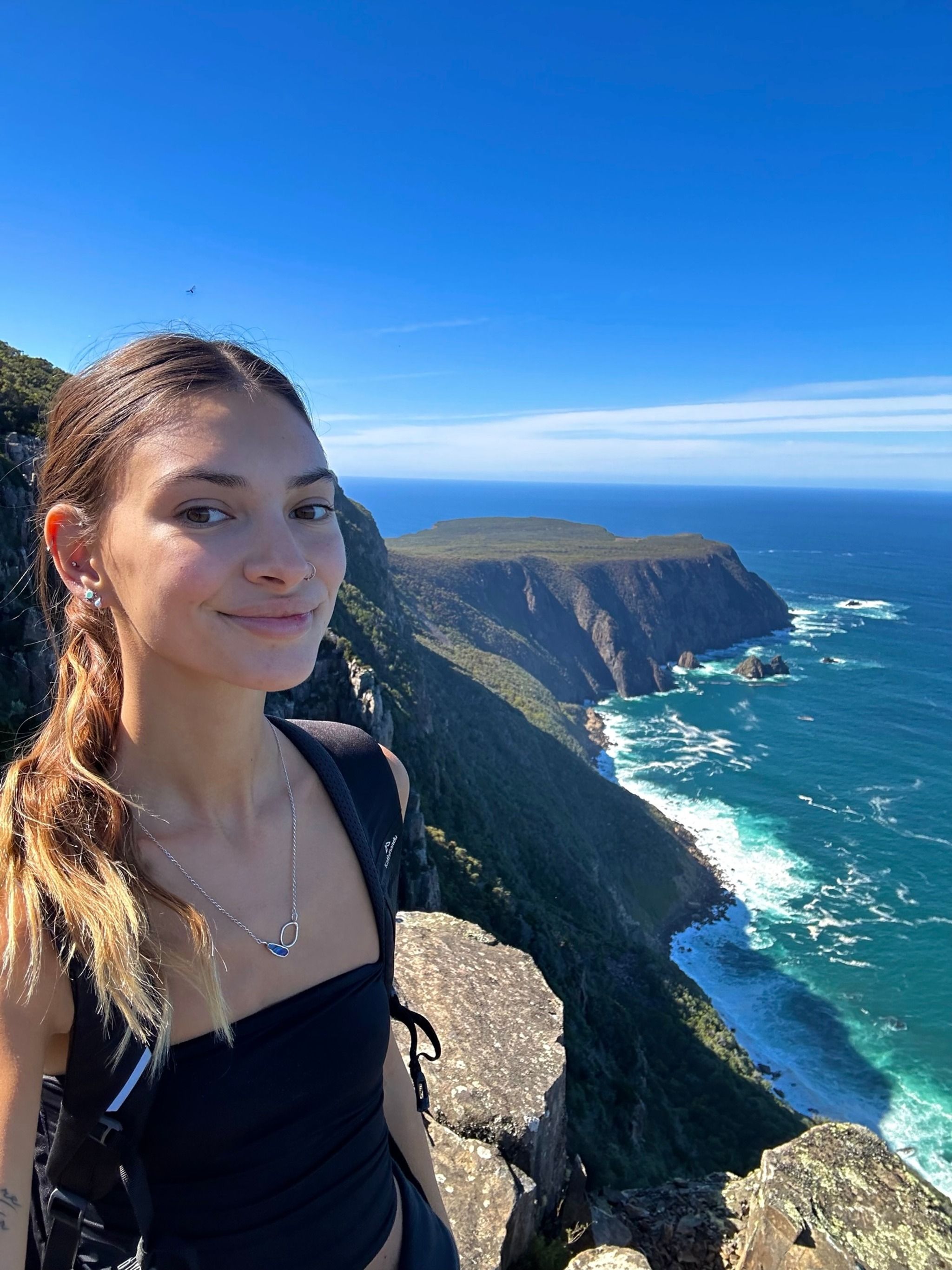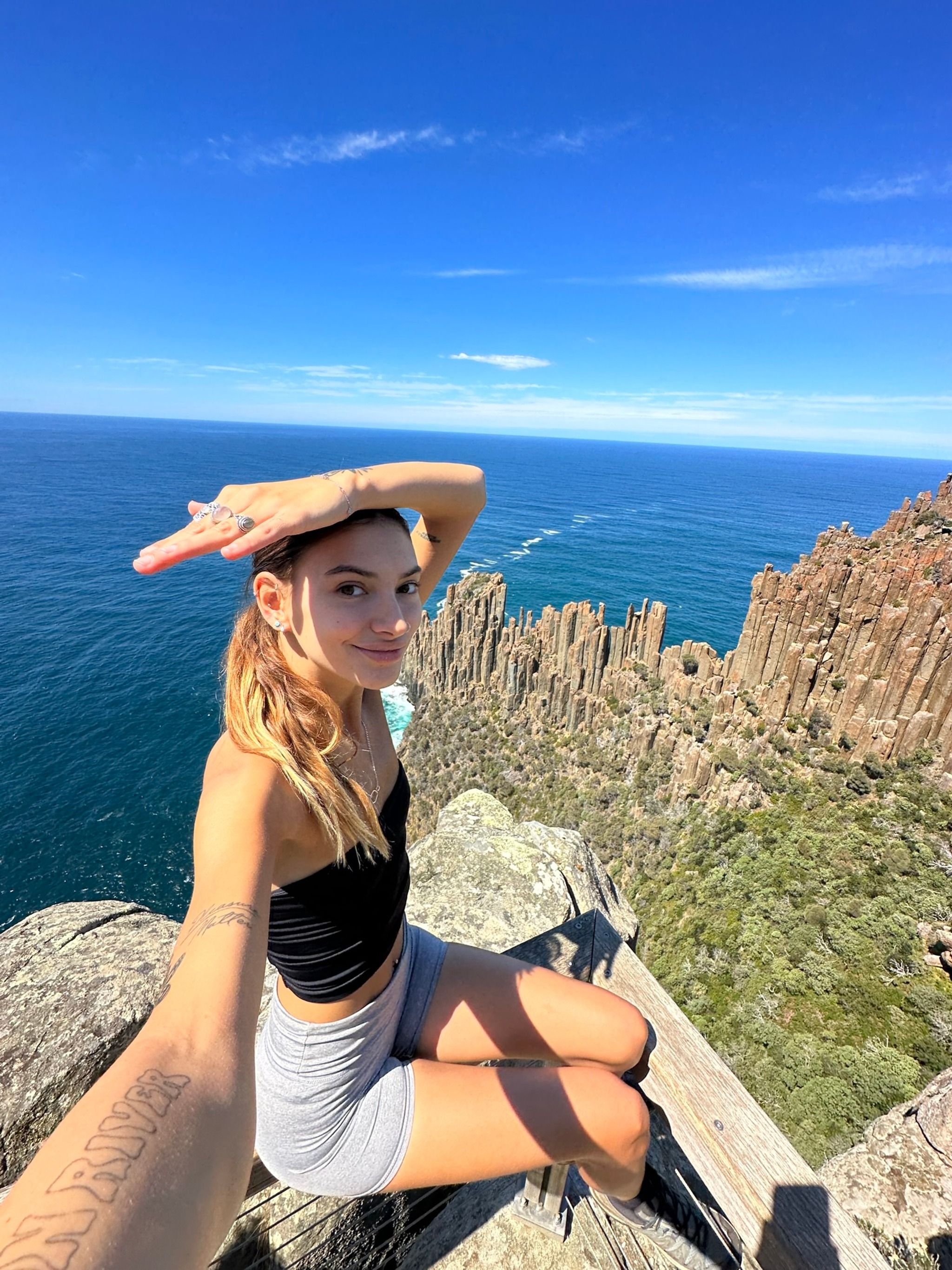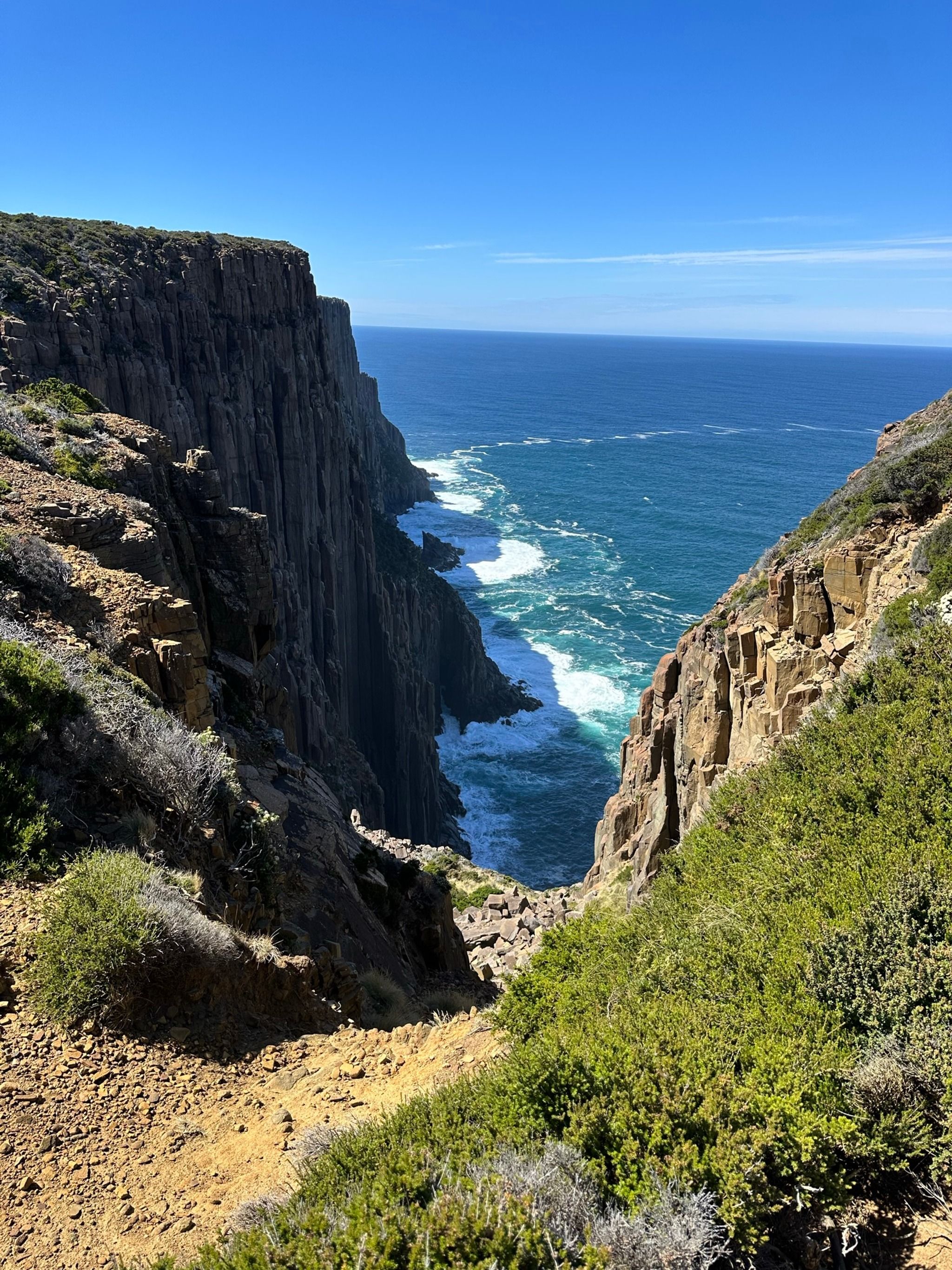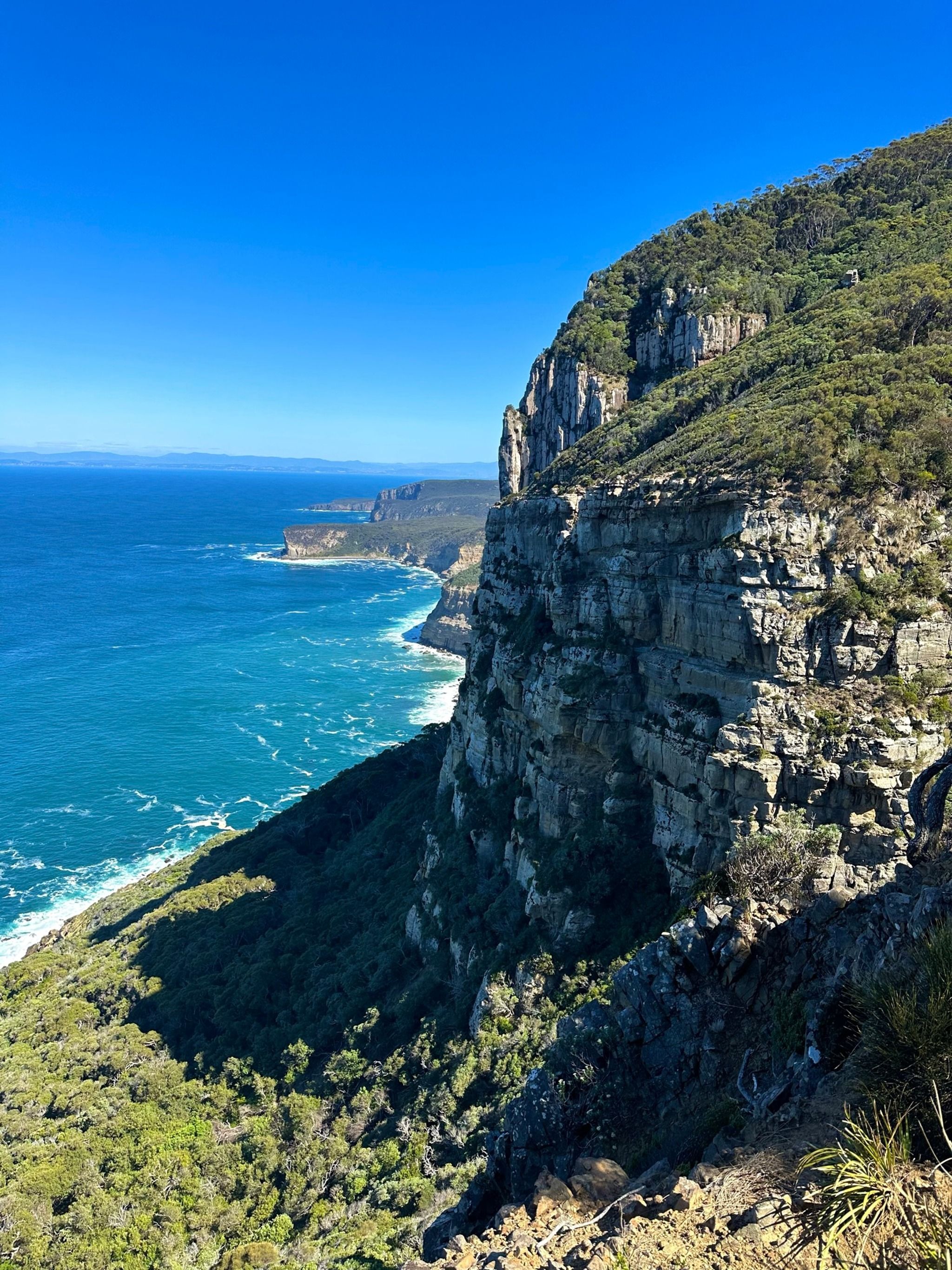 When you finally reach the end of the track, you’ll find two amazing lookouts. First up is the Cape Raoul viewing point, where you’ll get a direct view of the rock formation that seems to shrink as it recedes into the distance, it's a bit tricky to describe, but the photos I’ve added should help clarify. The second lookout, Seal Rock, offers a side view of the entire formation, which is mind-blowing. I even saw some rock climbers scaling the cliffs, which was such a special sight.