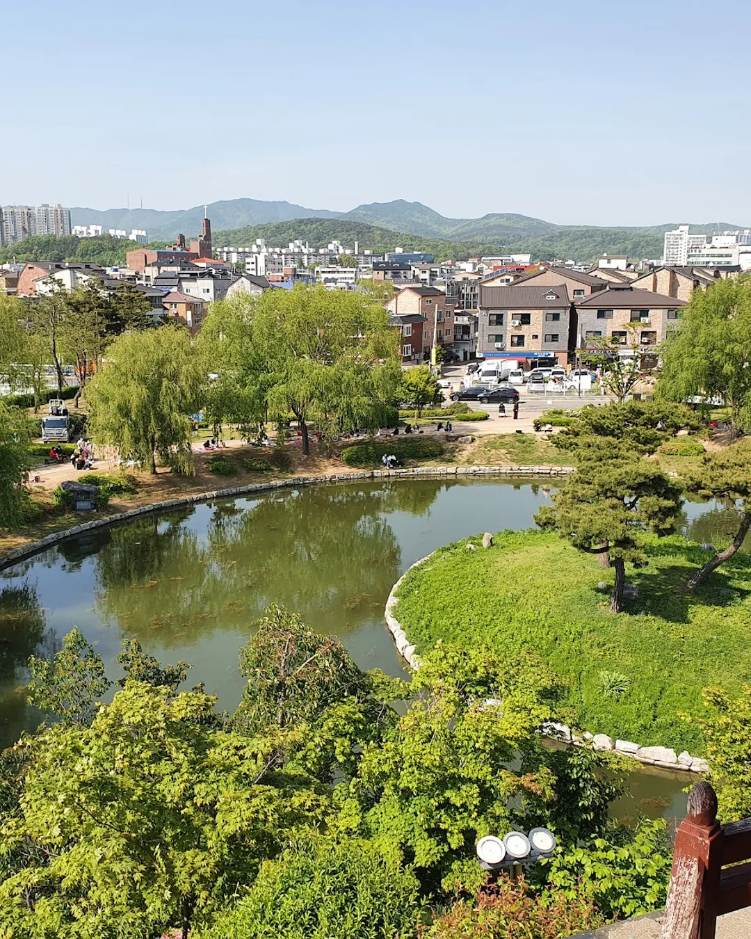 Outside the fortress wall lies Jangan Park, a lively community space where locals gather to play chess, exercise, or walk their dogs. Just below the inner fortress wall you’ll find stylish cafés and restaurants—perfect for a break.