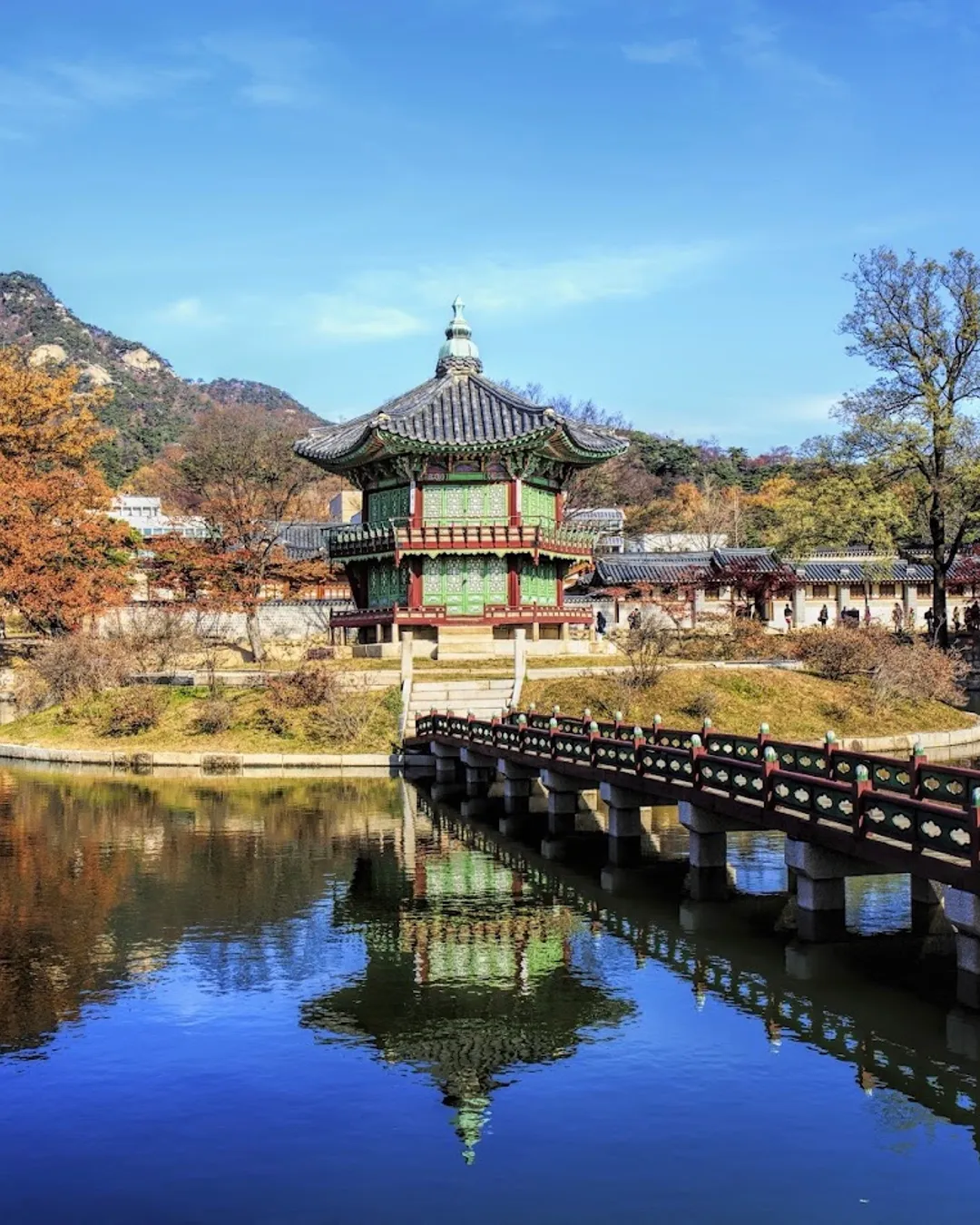 Head West to Gyeonghoeru Pavilion (경회루) → The iconic banquet hall on water.