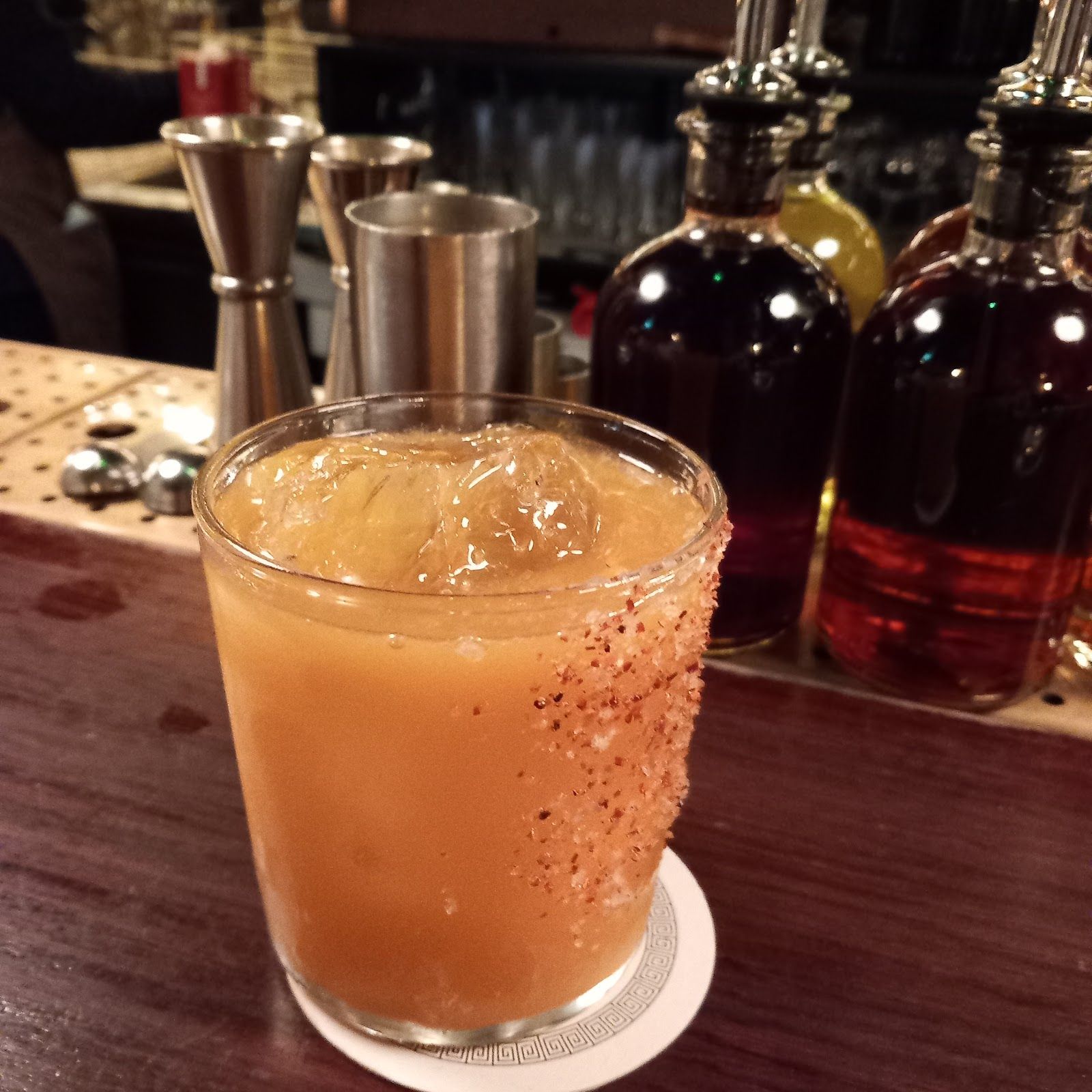 Vibrant cocktail bar with live jazz