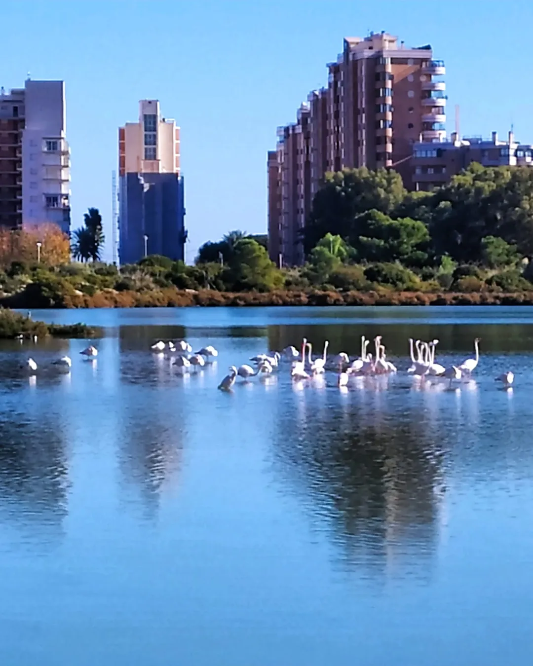 Urban salt lagoon in Calpe, home to flamingos