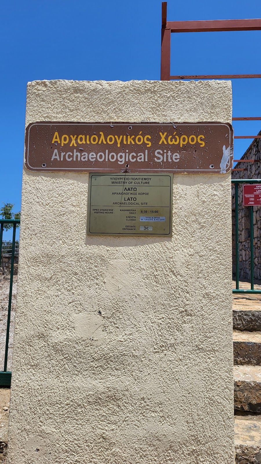 There are no buses to Lato. The nearest stop is in Kritsa, from where it's a 3km walk north. The site is off the Kritsa–Lakonion Rd.