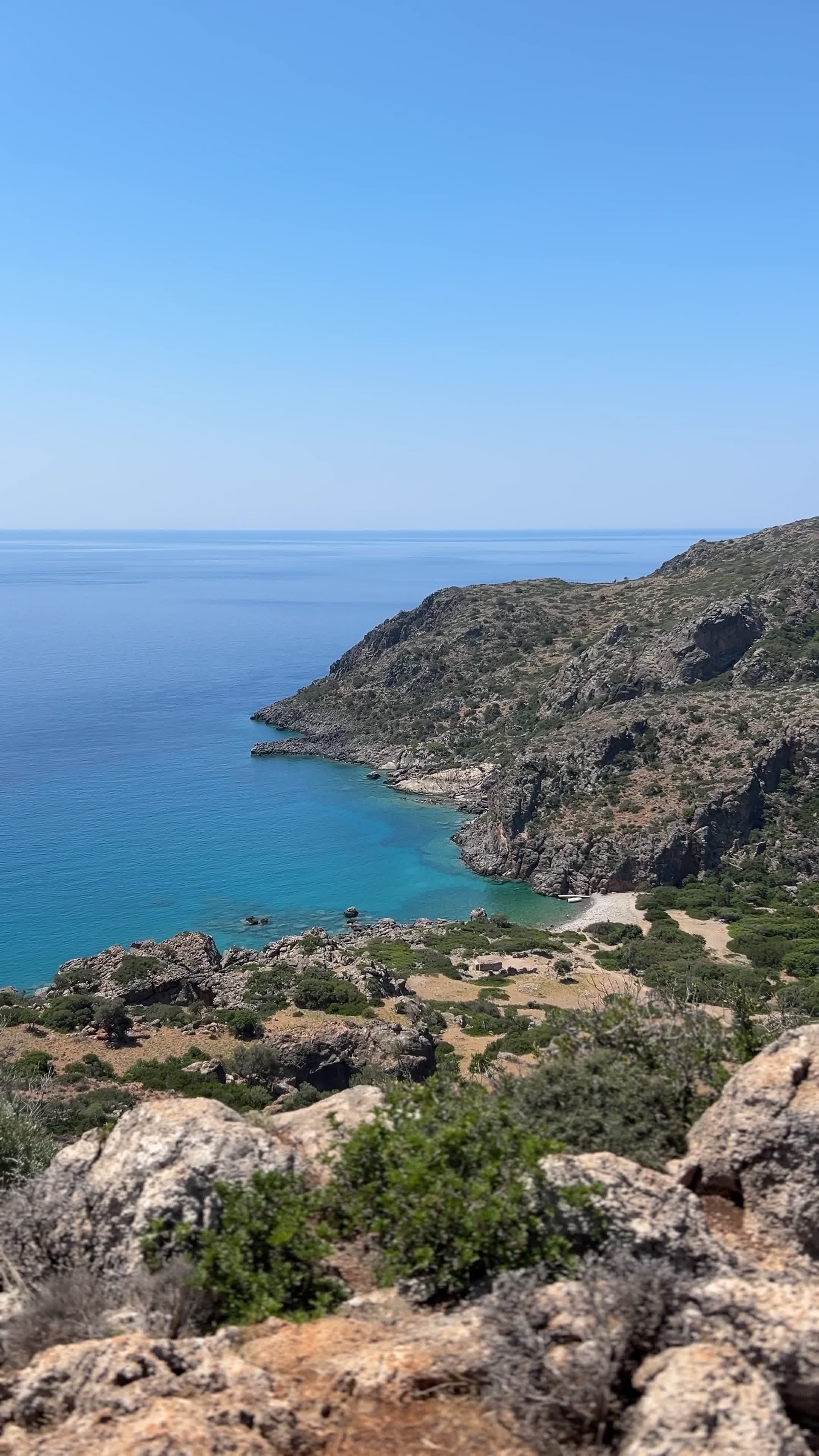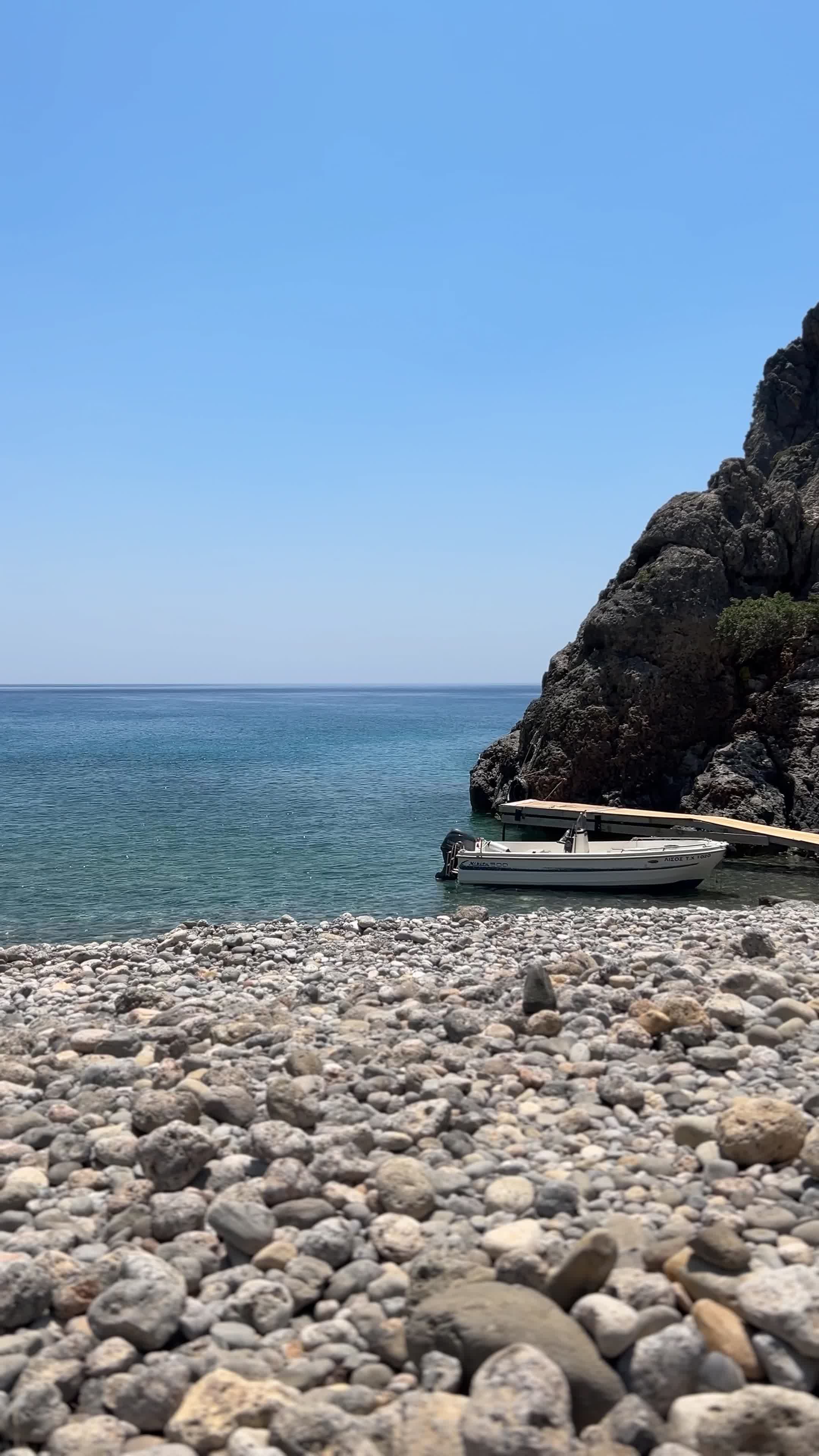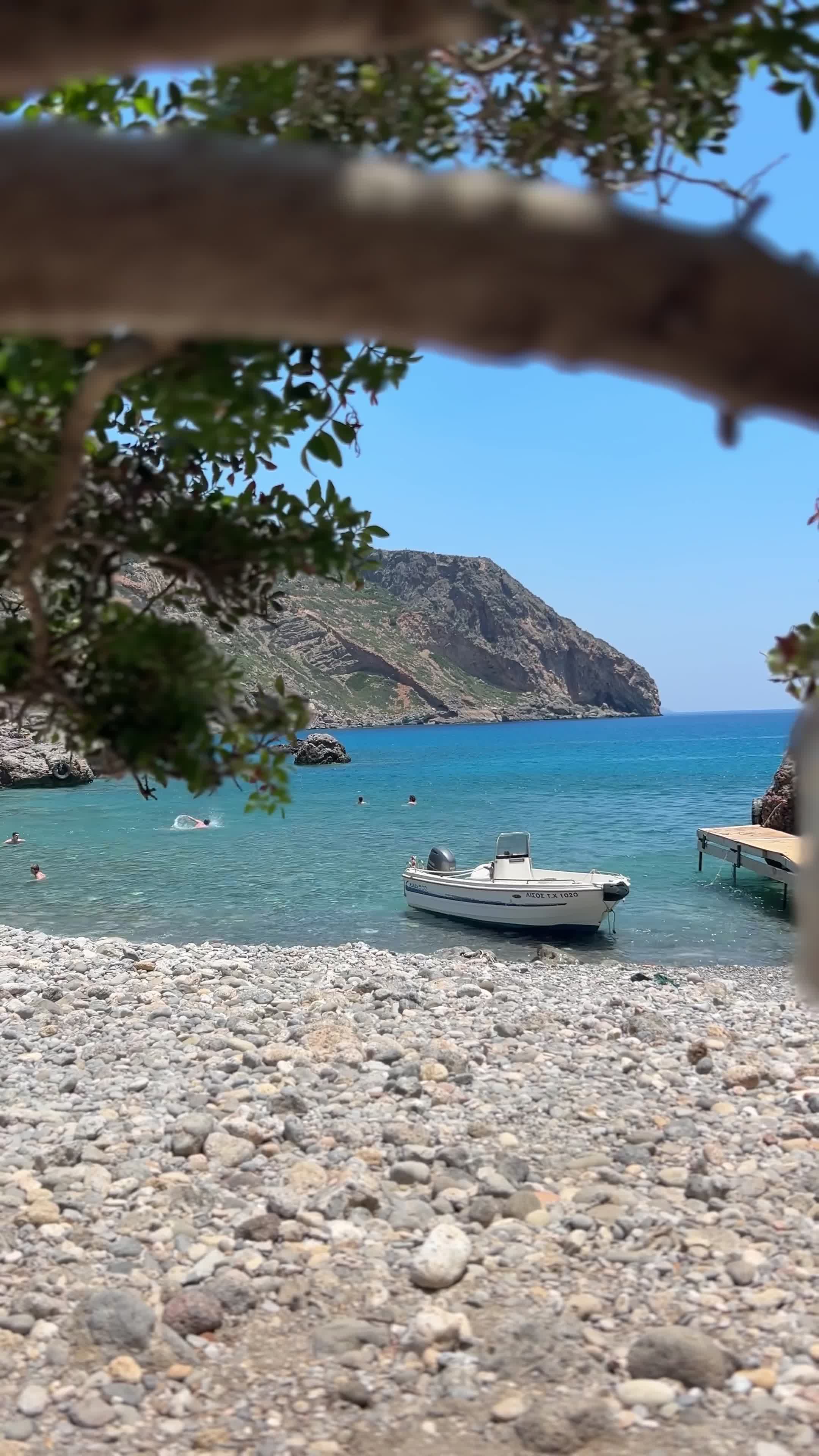 If you continue along the trail, you'll arrive at the small pebble beach of Lissos, a peaceful and remote spot where you’ll rarely find crowds—we shared it with just a few others. We recommend bringing water shoes due to the large stones and definitely snorkeling gear, as the underwater scenery around the rocks is spectacular.