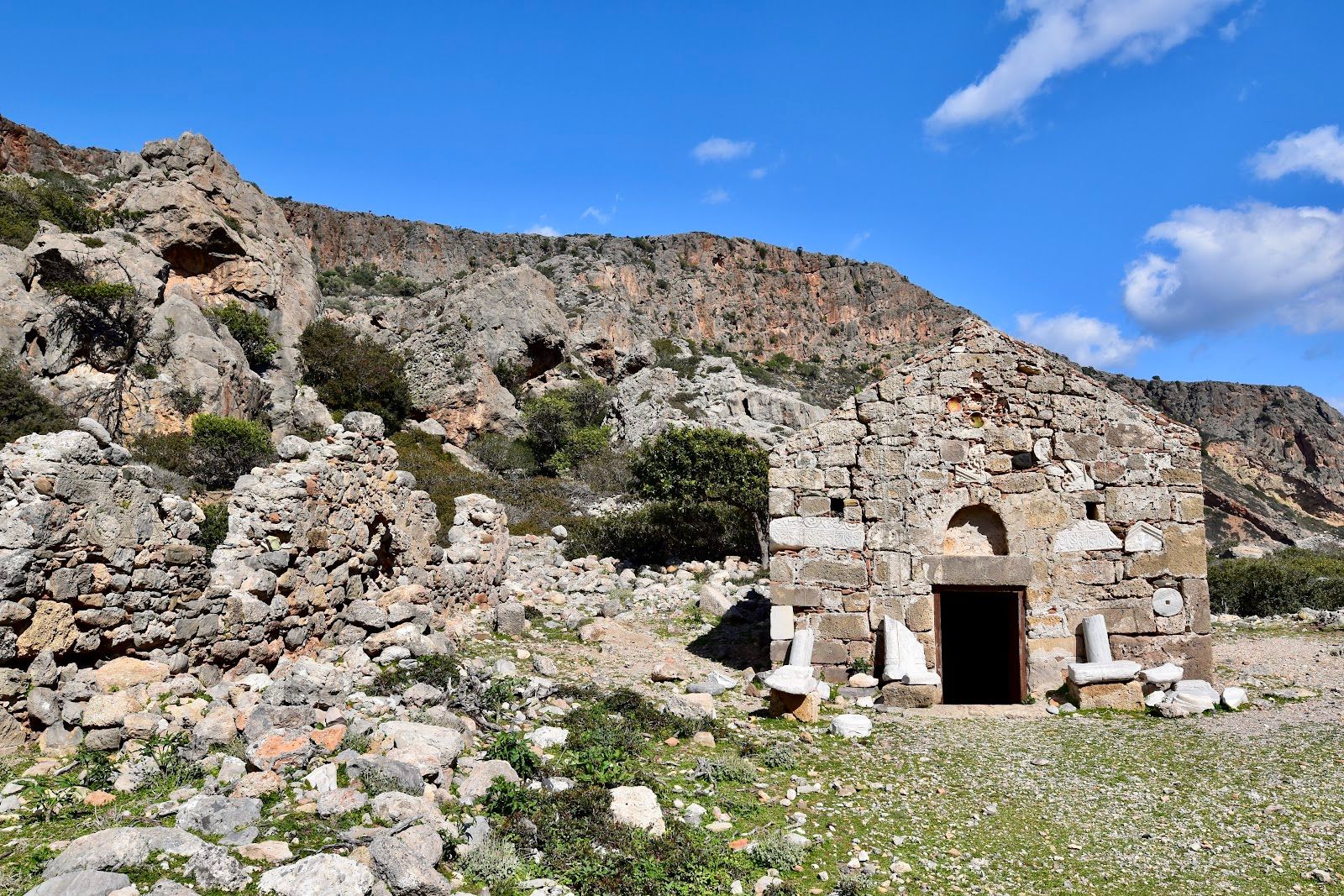 Ancient Lissos (Lisos) was once the seaport of Elyros, nestled in a small valley between ancient Syia (modern-day Sougia) and Paleochora. The city flourished from the Hellenistic period until the 9th century, when it was destroyed by the Saracens. Numerous statues and coins discovered in the area reveal that Lissos was once one of the most influential cities in ancient Crete.