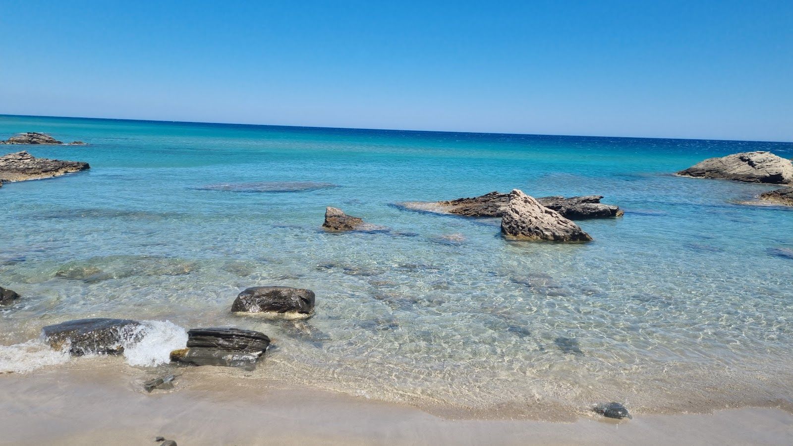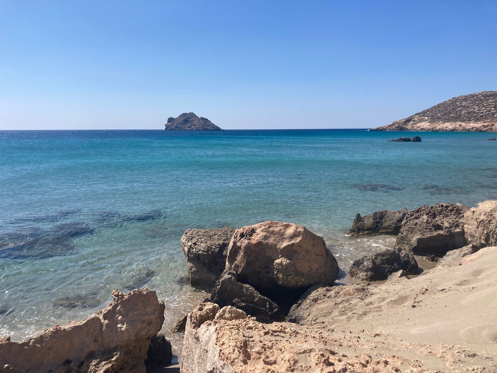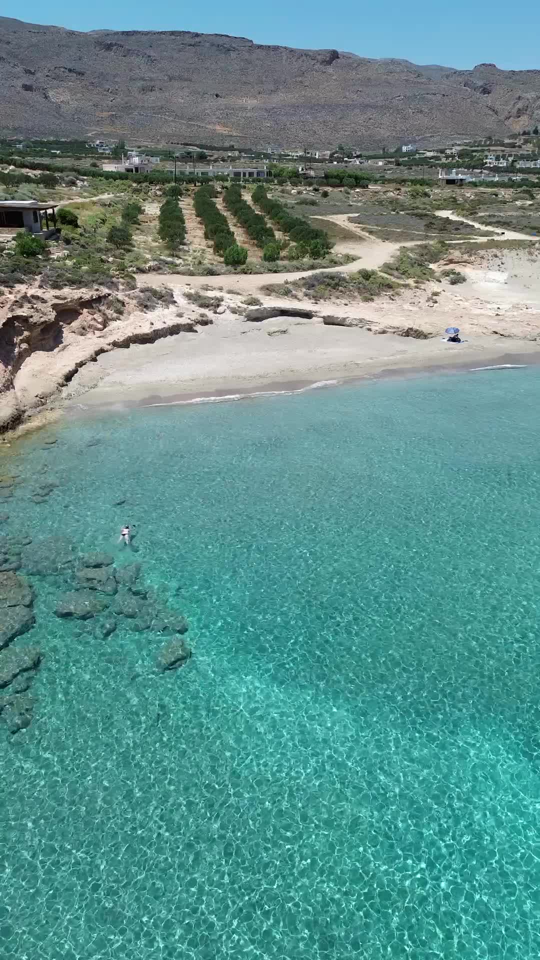 Despite its modest size, the beach offers surprising variety — from rocky coves and golden sand, to coarse and fine pebbles, and even a distinctive clay beach. This diversity, set against a backdrop of rugged mountains and barren cliffs, creates a raw, almost otherworldly beauty.