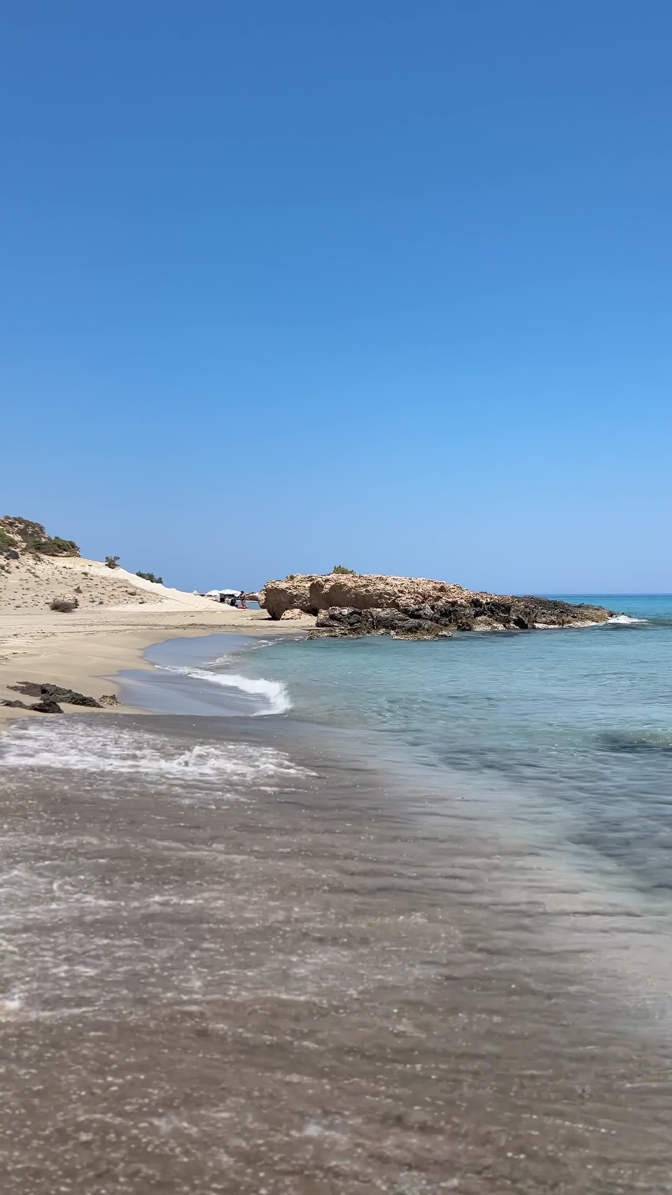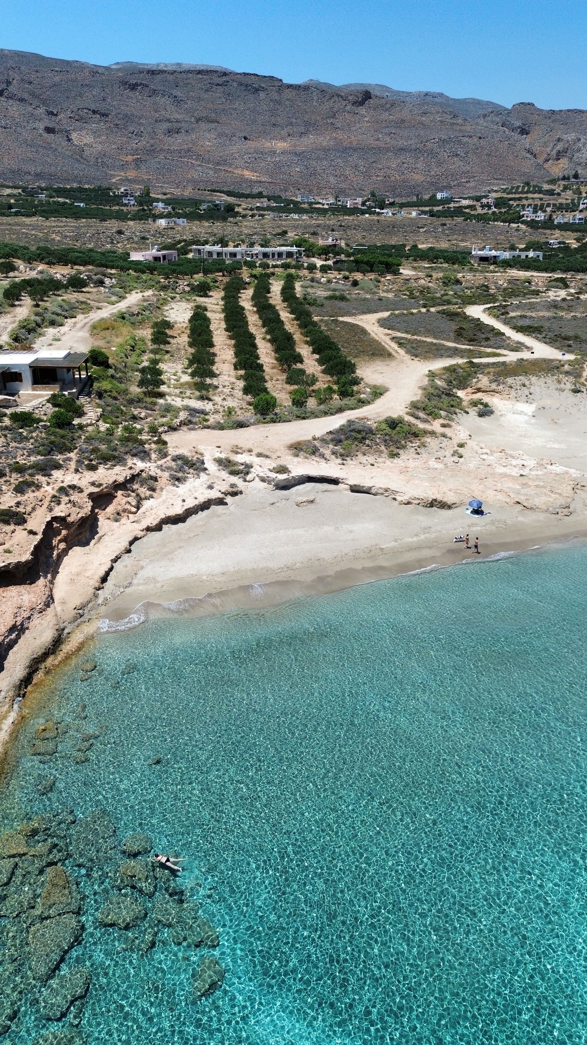 Tucked away in the untouched landscape of Xerokampos, Argilos Beach is a true escape for nature lovers and those seeking peace and simplicity. Known for its unique clay-rich shoreline, you can indulge in a natural spa treatment, applying the therapeutic clay directly to their skin before rinsing off in the crystal-clear sea.