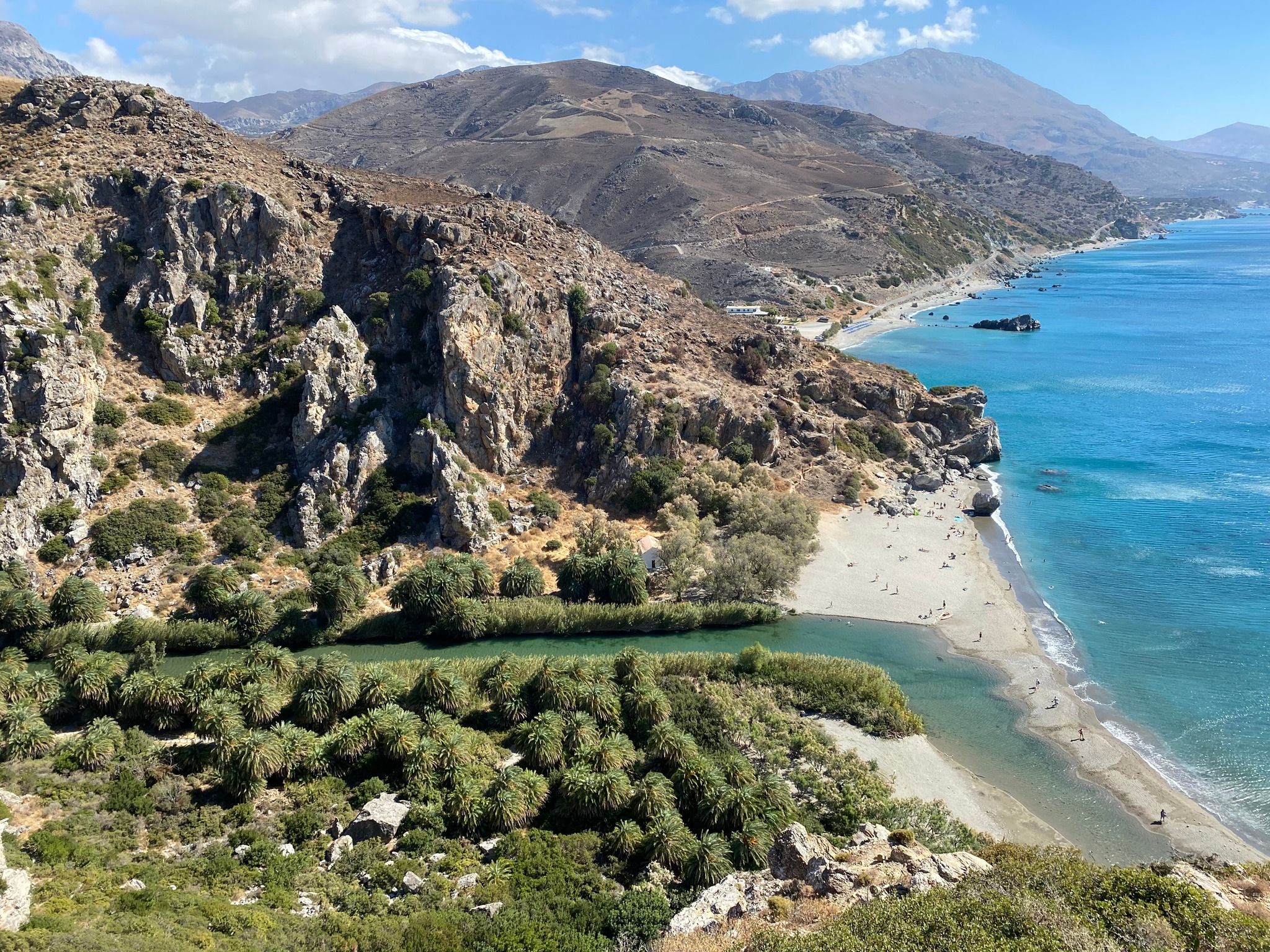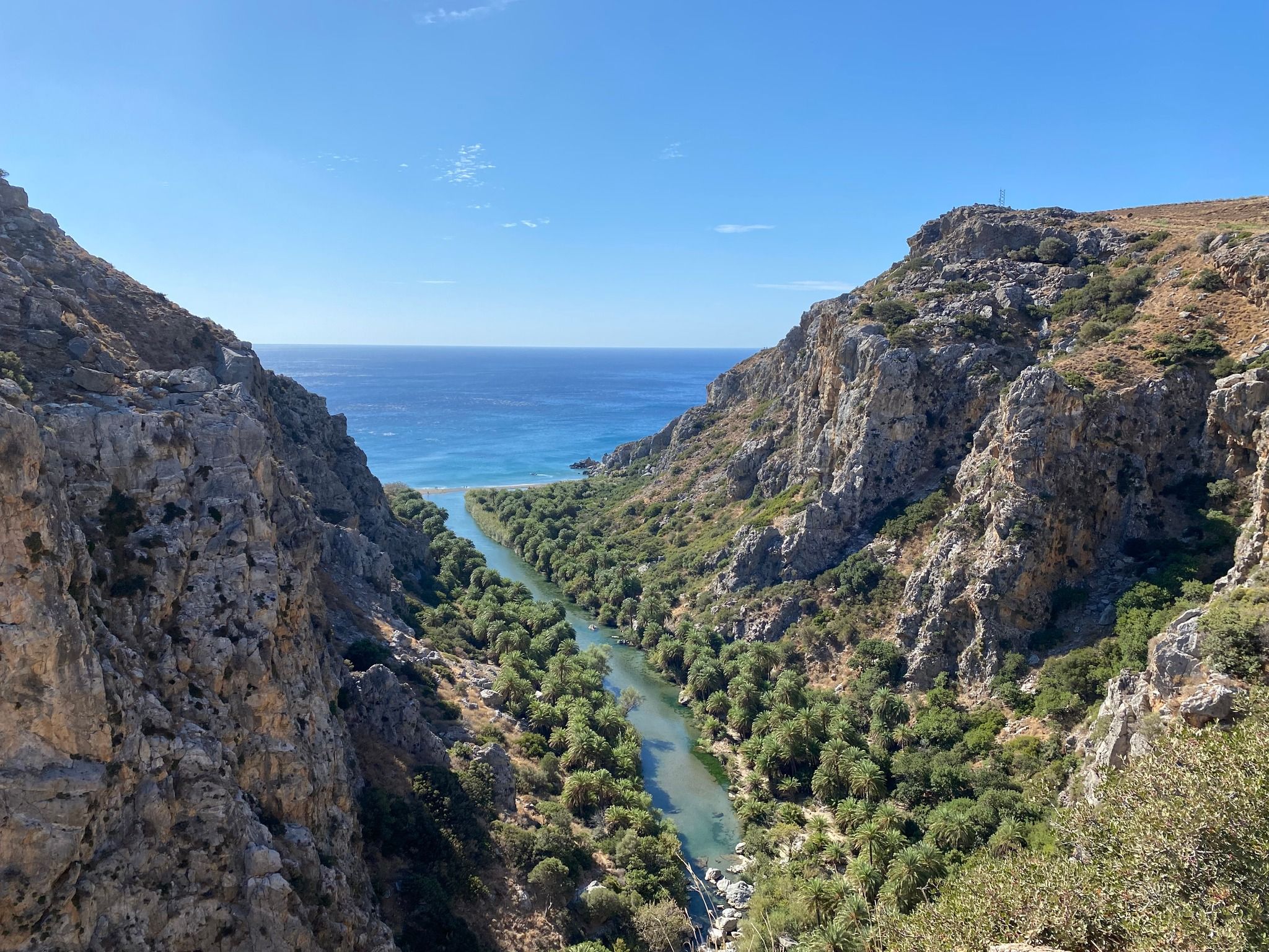 Starting at Gefyra Bridge, where you’ll find a café and free parking, the hike to Preveli Beach takes approximately 2.5 hours each way. This circular route leads you along both sides of the gorge before descending to the beach, offering breathtaking views throughout. While the hike includes some moderate elevation changes, it is generally of easy to medium difficulty. However, as most of the trail is exposed, it’s best to avoid hiking during the peak summer months of July and August.