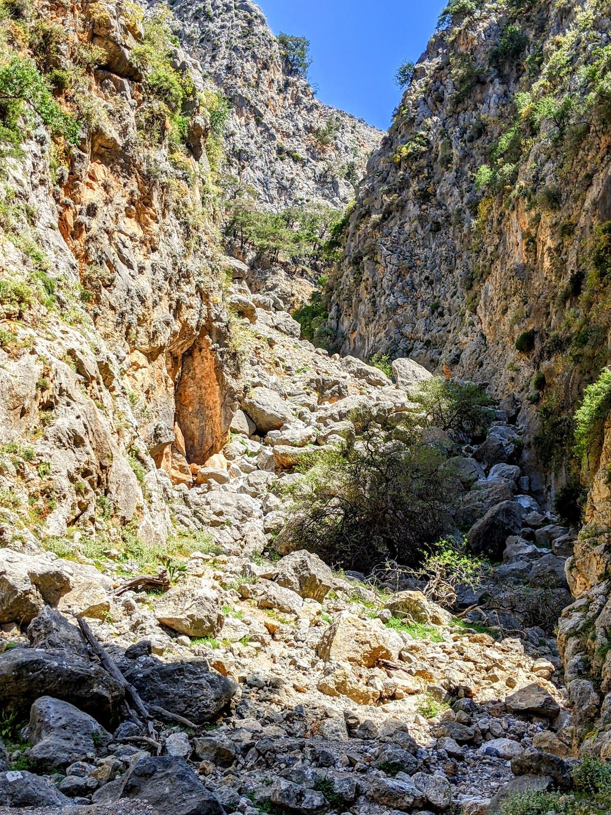 The Aradena Gorge, located in southwestern Crete, is a fabulous natural canyon. It offers dramatic landscapes, wild terrain, and a touch of history. It's one of the more popular hikes but much quieter than Samaria, Imbros or Agia Irini. There are several tricky passages that require less experience and concentration going up then going down.