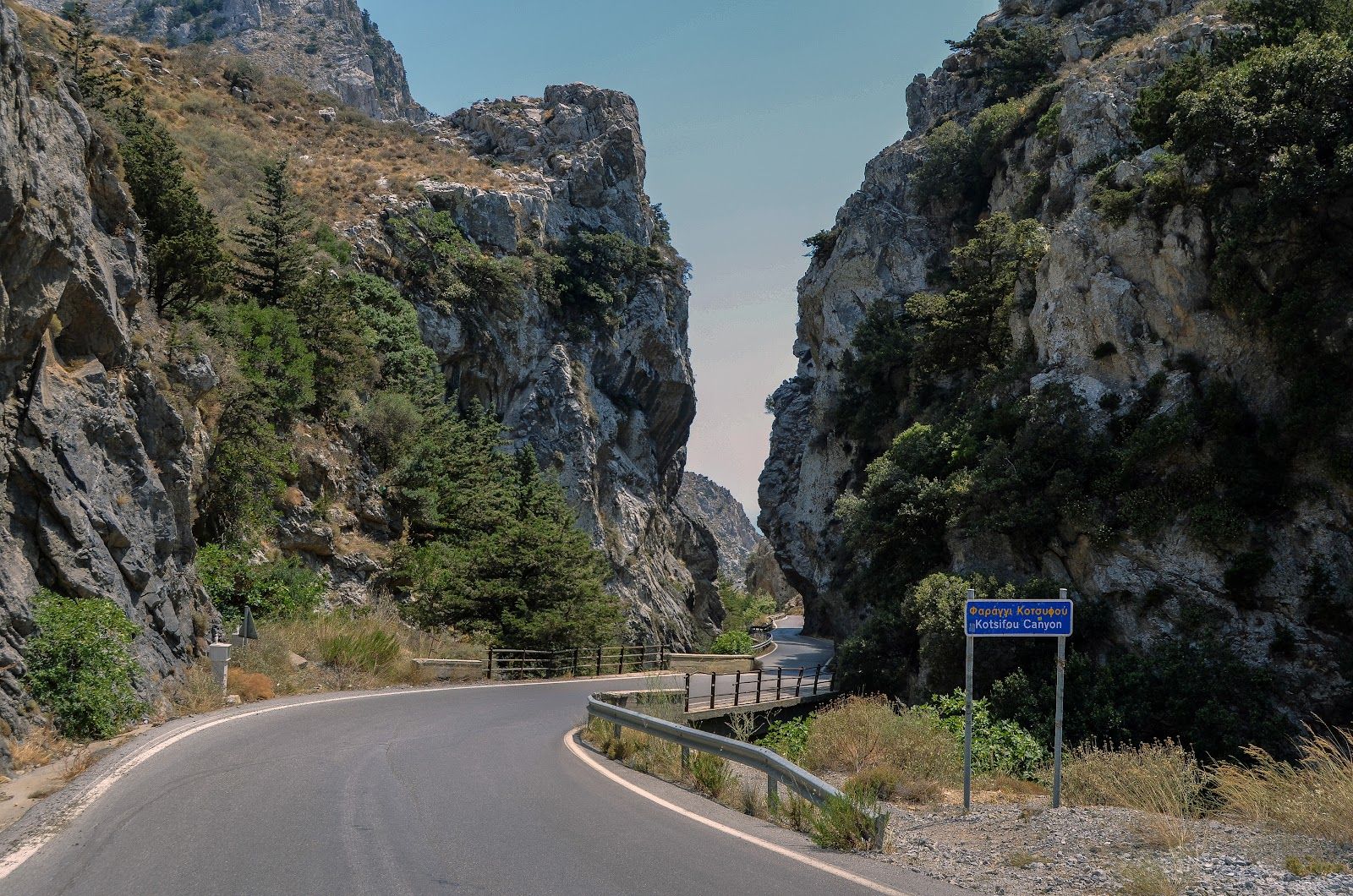 Kotsifou Gorge (Greek: Φαράγγι Κοτσιφού) connects the village of Sellia to Kanevos, eventually leading you toward Plakias on the southern coast. The road cuts directly through the gorge, winding between sheer cliffs that close in dramatically above you.