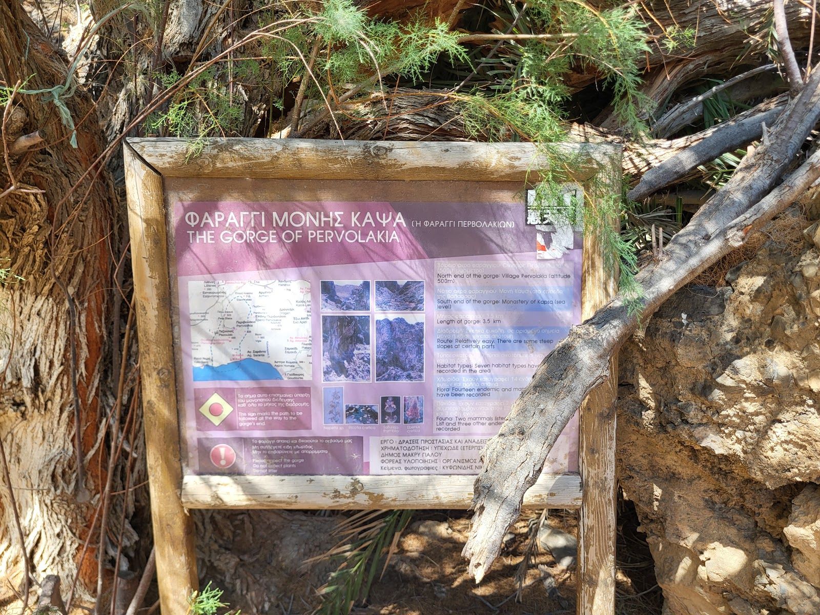 If you ascend from the southern exit (Monastery) to Pervolakia, the hike takes around 3 hours.