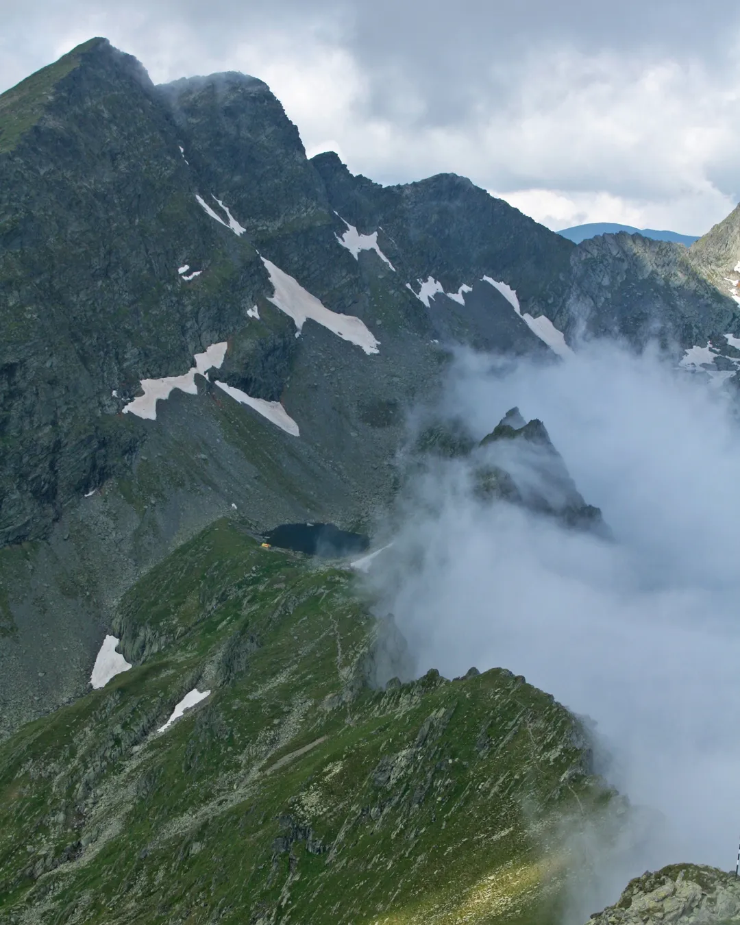 The Făgăraș Mountains are known as the "Transylvanian Alps" due to their pronounced glacial relief, sharp ridges, and extremely capricious weather. Negoiu Peak (2535 m), the second highest in Romania after Moldoveanu, is famous for its rugged, rocky appearance and the technical sections required to reach it.