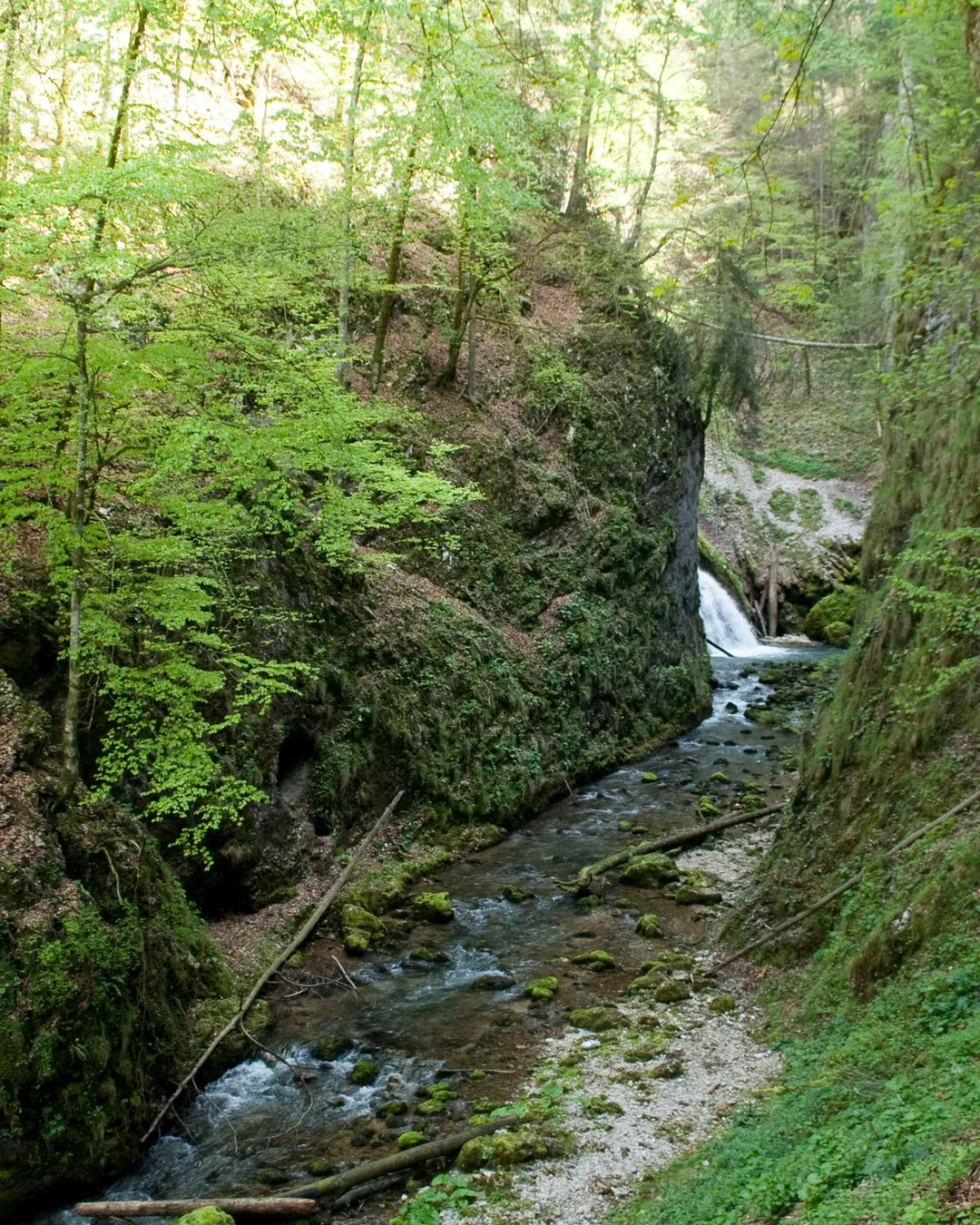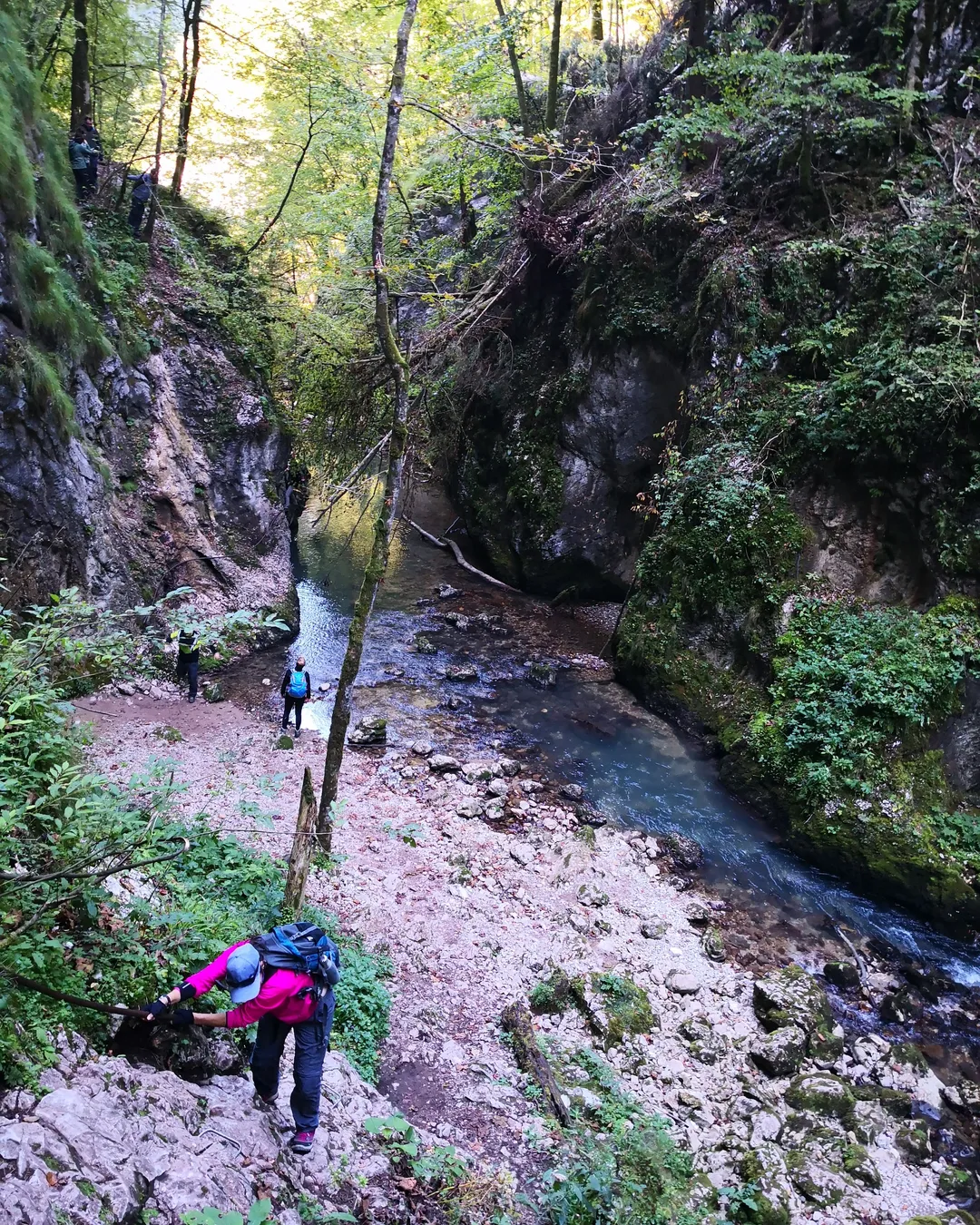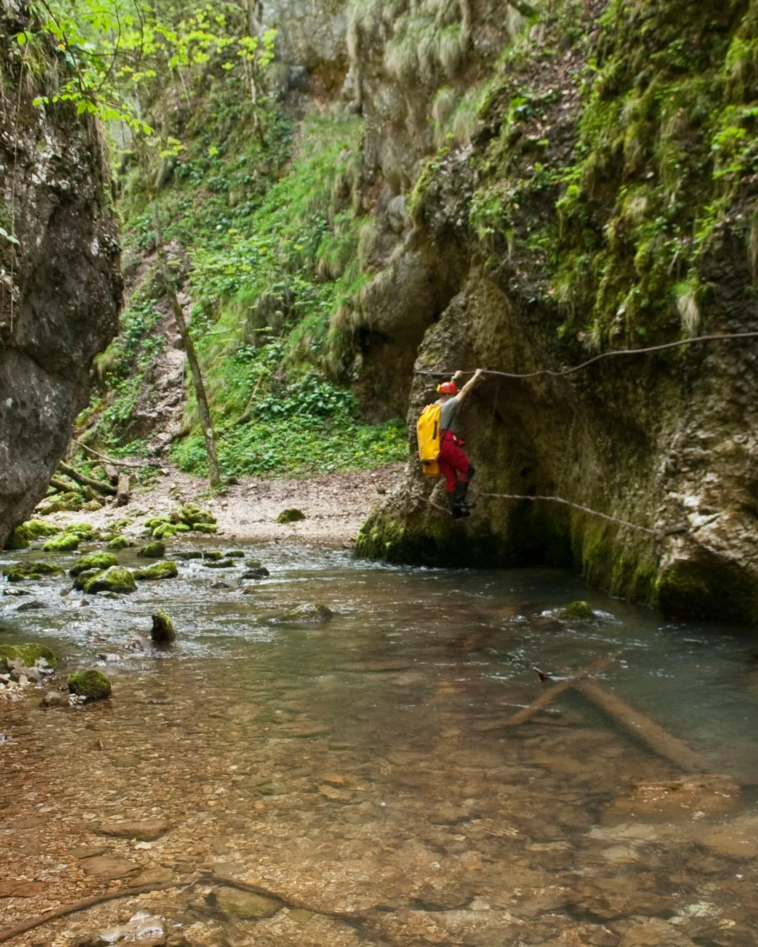 Going through the gorge means also overcoming some difficult areas, 3 passages equipped with steel cables for hands or feet. Their lengths vary from 20 to 100 meters. These sections are quite hard to cover because the humidity of the valley makes the rock and the cables slippery.