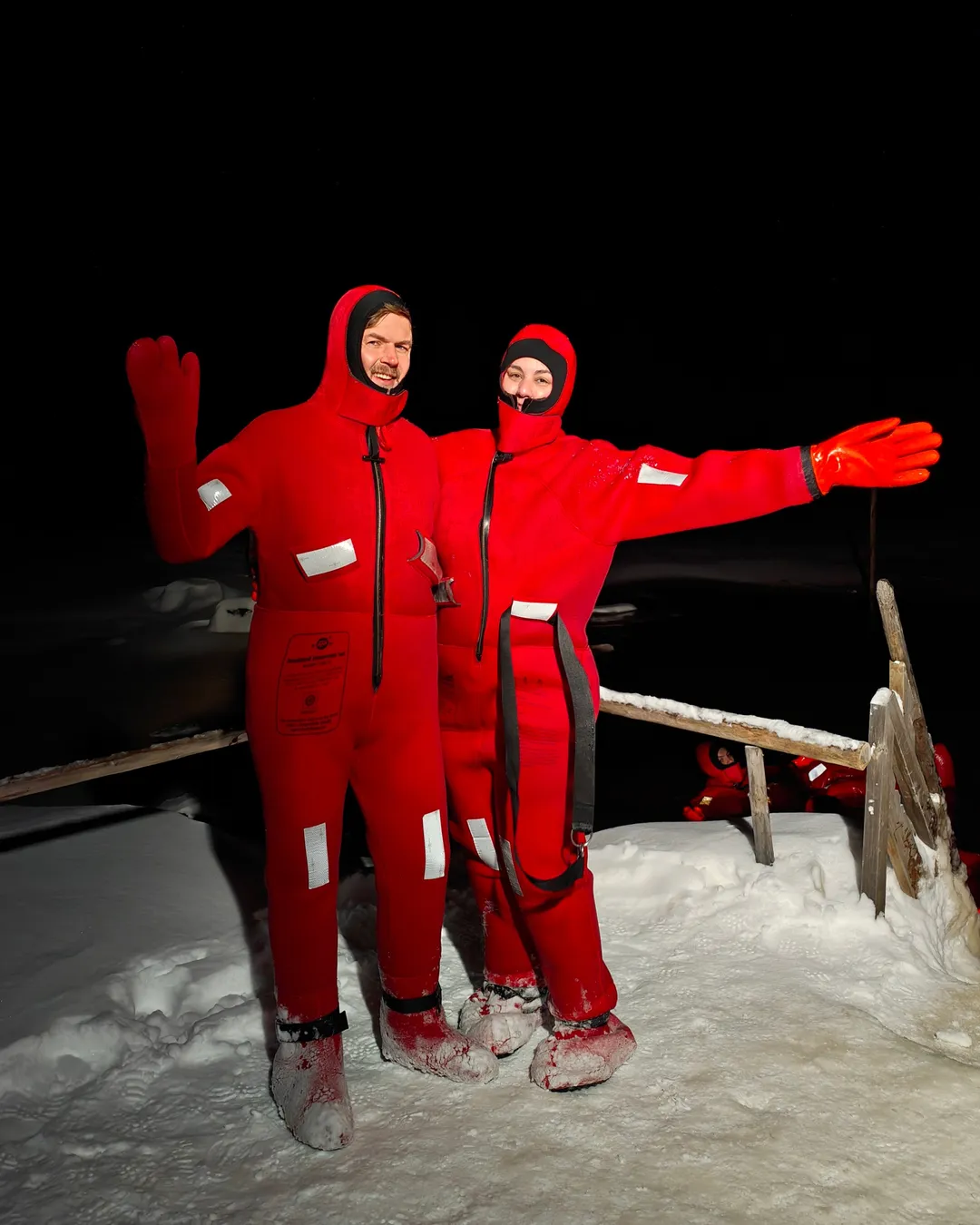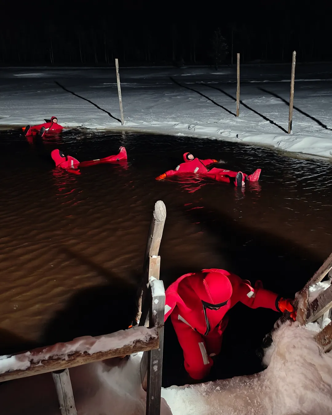 So although I liked this experience with Safartica, for me personally, it felt a little bit underwhelming. They drive you to a cabin by the water, where you will need to change into a suit before you enter a small pond that they made into the thick ice. What I thought was very odd, is that they gave us the wet suits from the guests that were in the water before us.