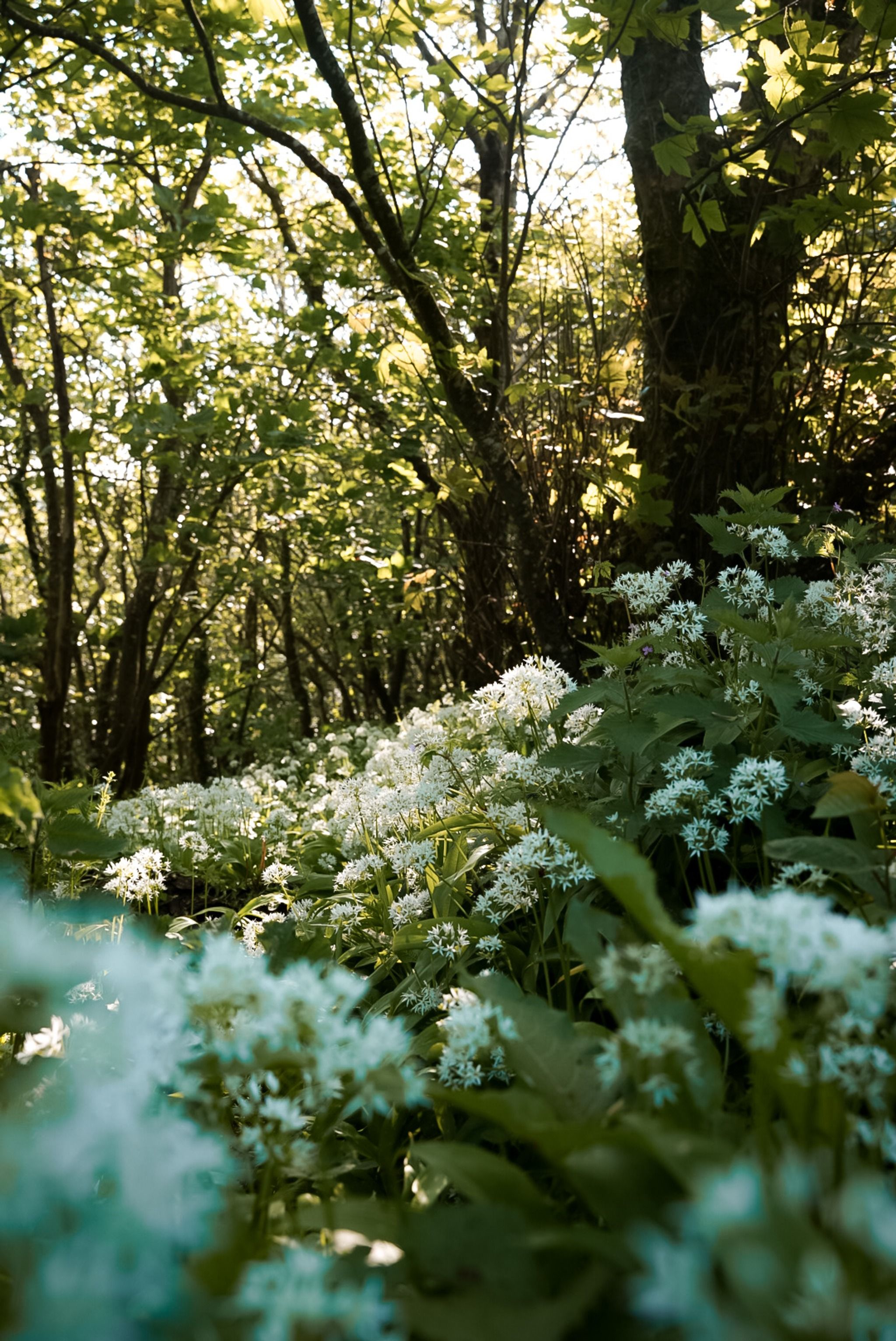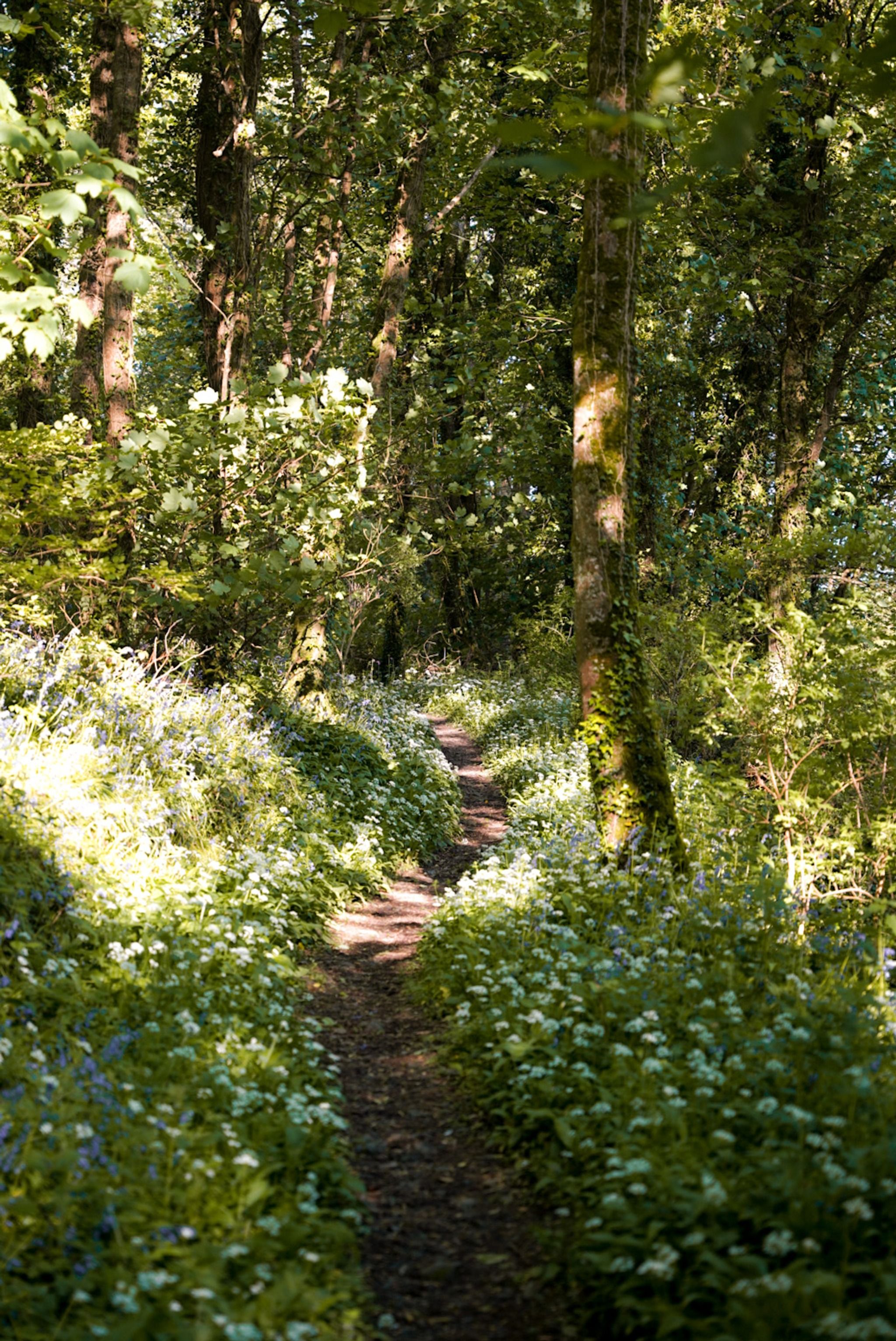 Bluebell and Wild Garlic Woodland with sea views