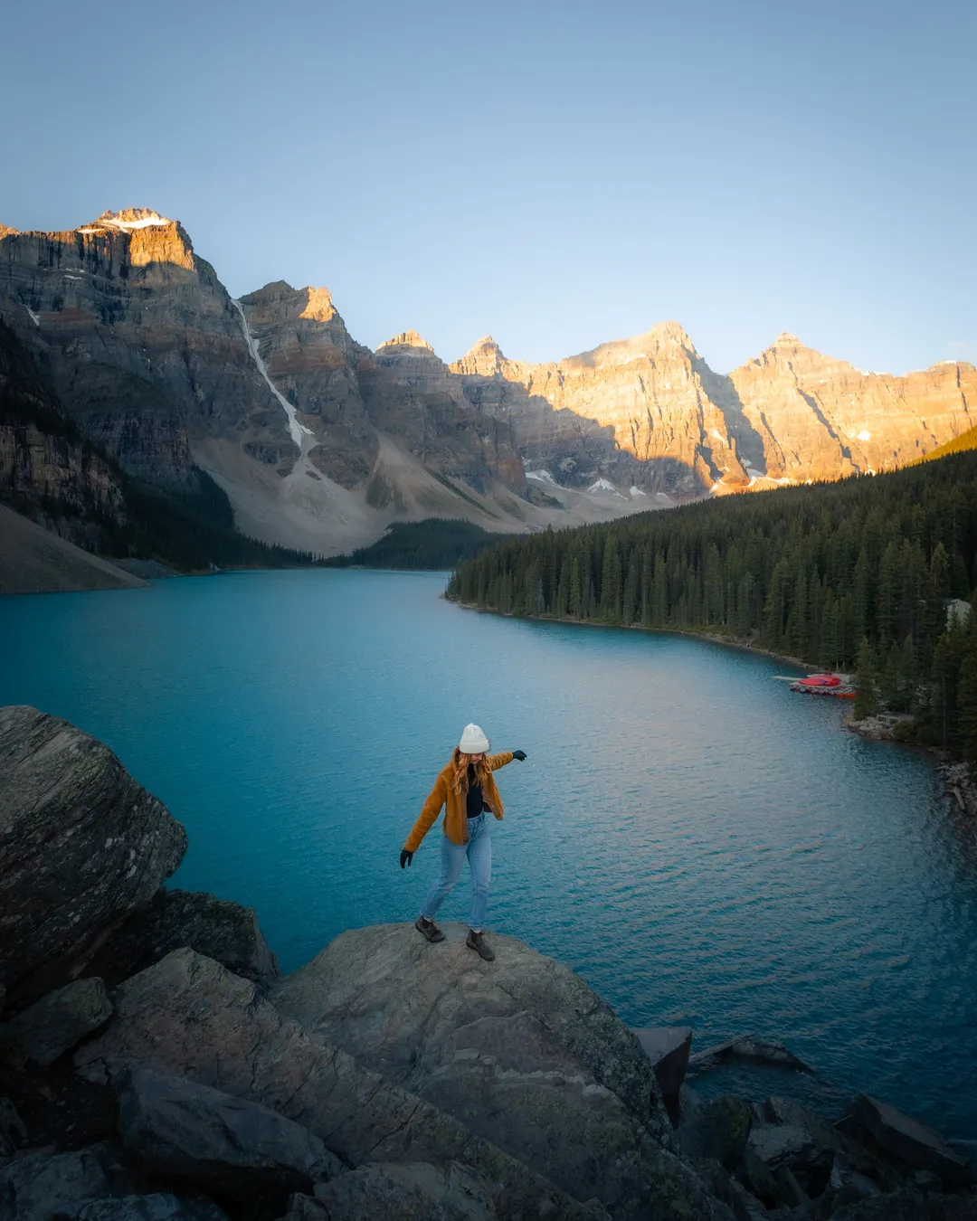 The road to Moraine Lake is only open seasonally from June to October, though it is closed for public vehicles at all times. To get to the lake, visitors have to use either Parks Canada Shuttle (try that first as it's the most affordable option) or use one of the private shuttle options. We recommend Moraine Lake Bus Company or Via Via Moraine Lake Shuttle (use our code DREAMYADVENTURERS15 for 15% off). If you can, visit for sunrise (trust us, it's worth it) and then venture to one of these beautiful trails that start at Moraine Lake: