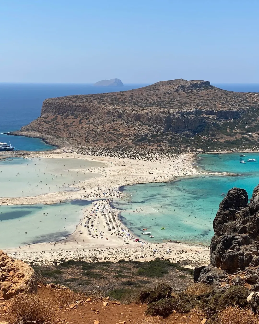 Daily boats depart from Kissamos Port, often combined with a stop at Gramvousa Island. This is the easiest and least physically demanding option, with direct access to the lagoon. There are private boats from the price of 300-400 euros also.