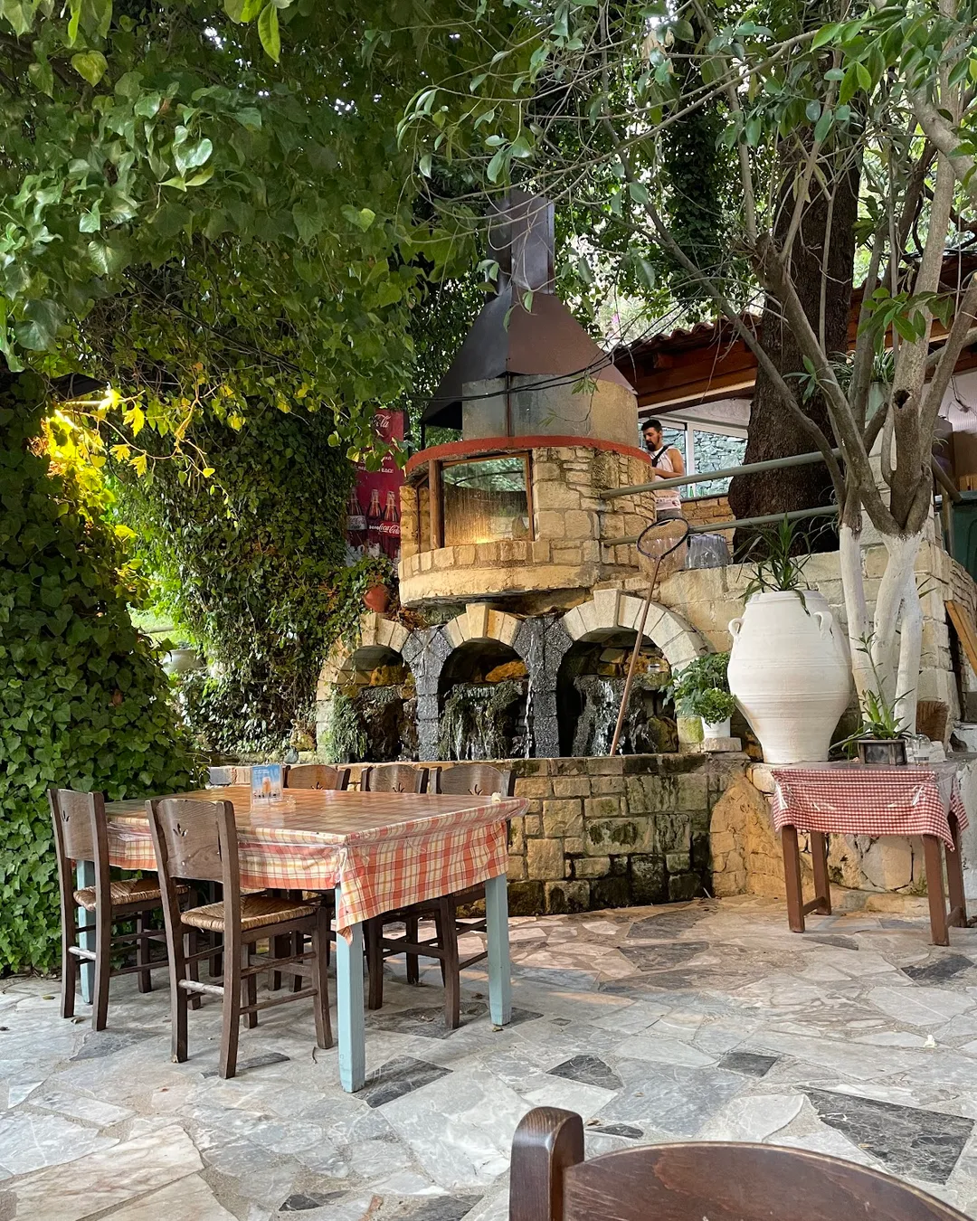 Local tip ⭐: Sit by the water features and plane trees for a meal with cool breezes and the sound of running water — this peaceful ambience is part of the experience here.