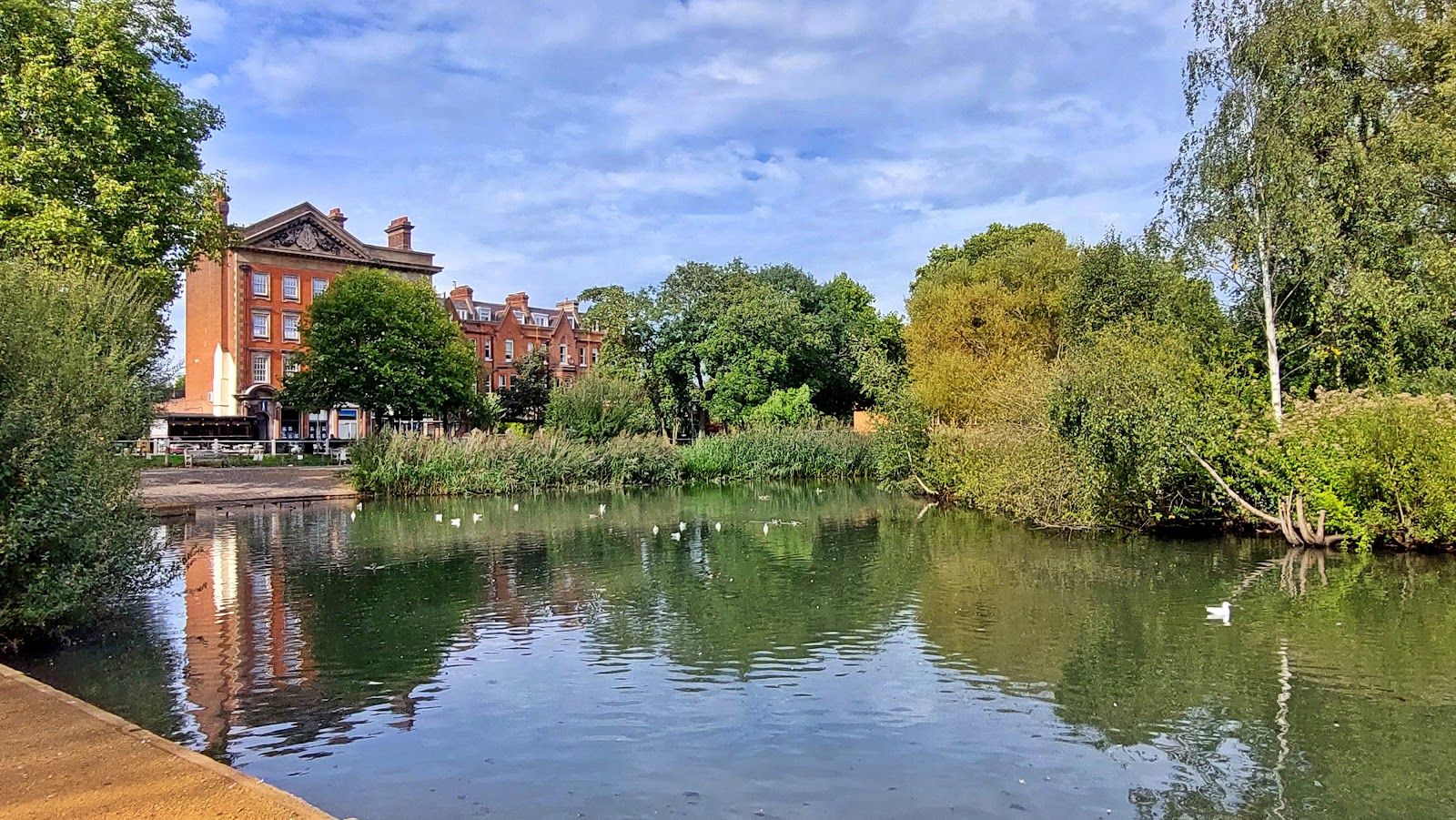 Tranquil urban park with pond
