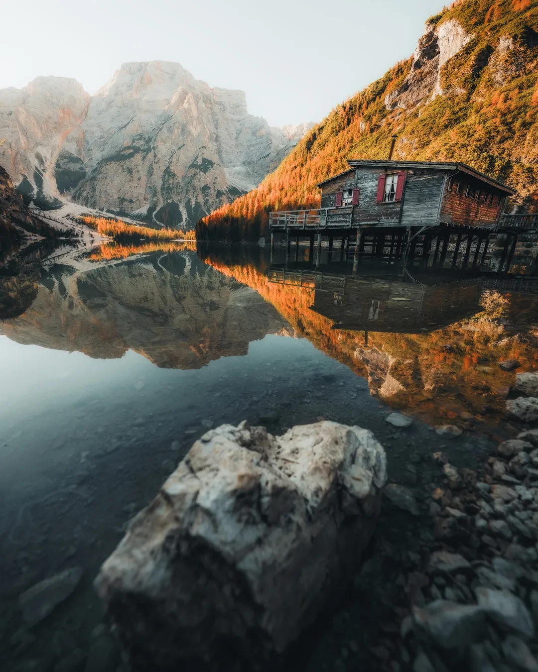 Scenic Italian Dolomites lake retreat