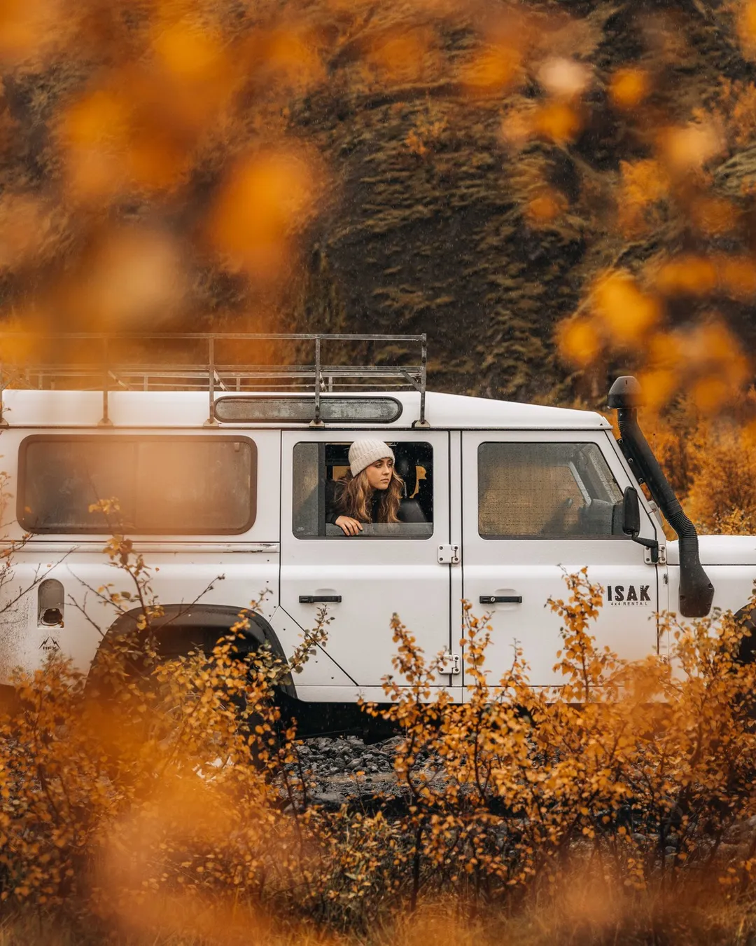 The best place to rent a 4x4 Super Jeep is from ISAK. They have well-equipped, photogenic cars, with a snorkel. This helps ensure you don't drown the engine while crossing a river. Use the code "gunnar" for renting your Defender on a special price.