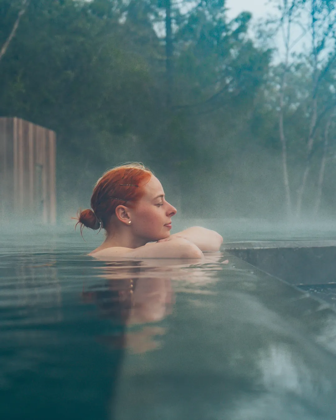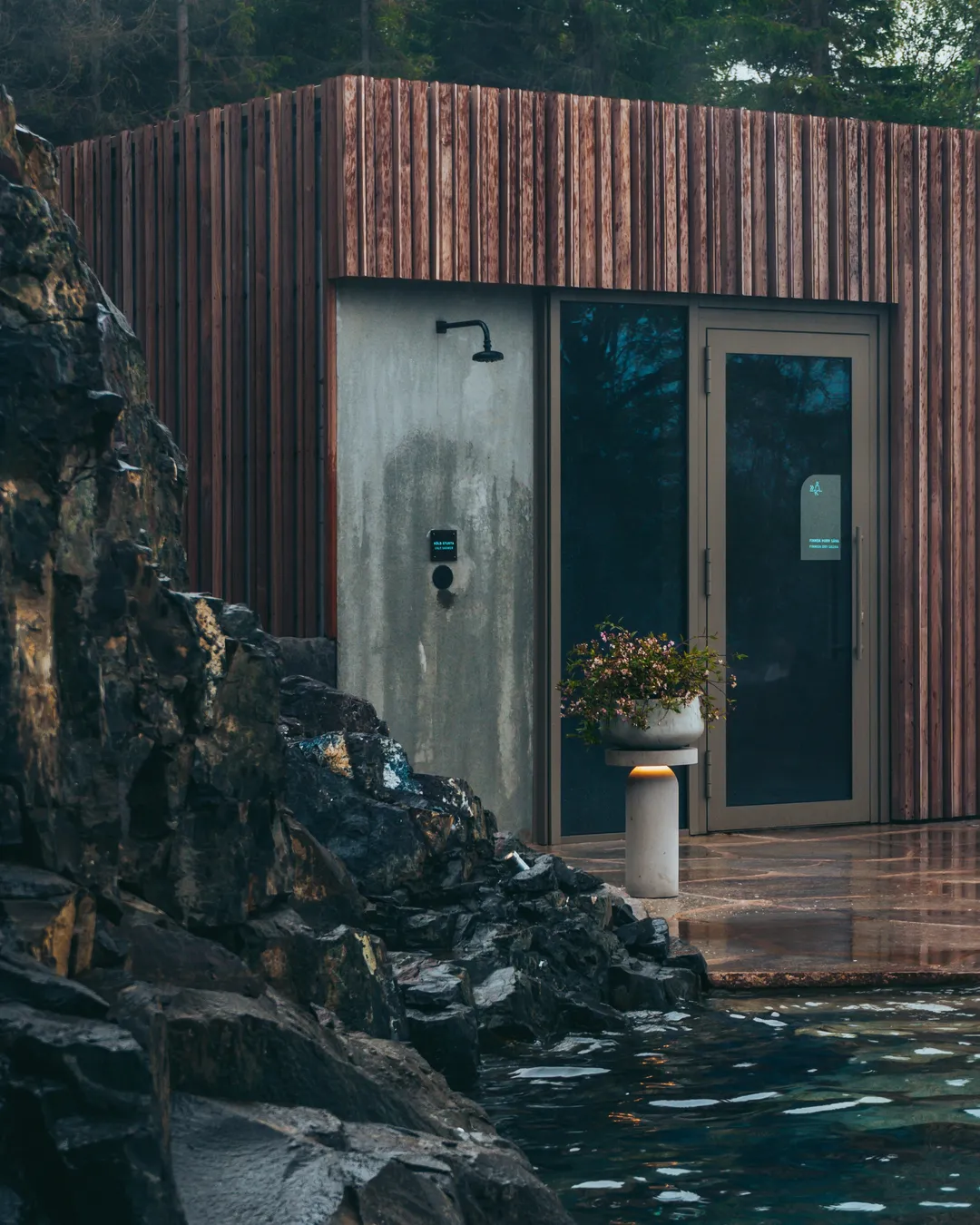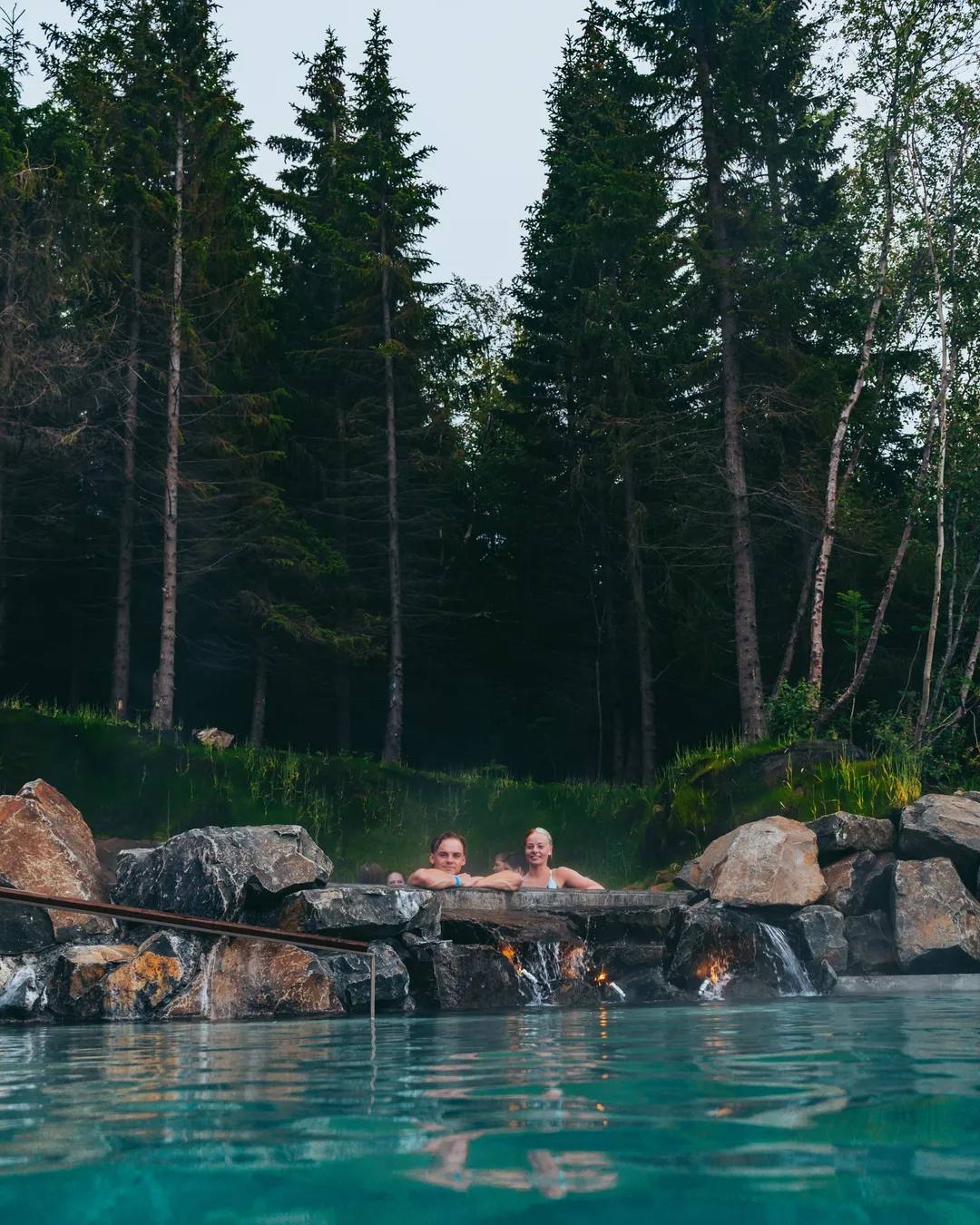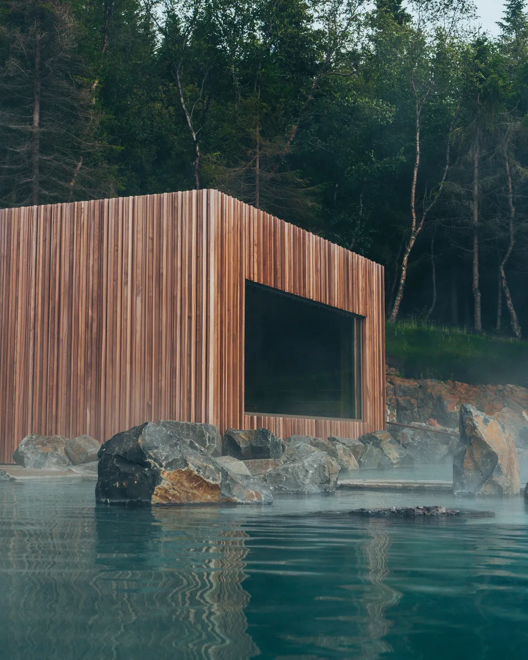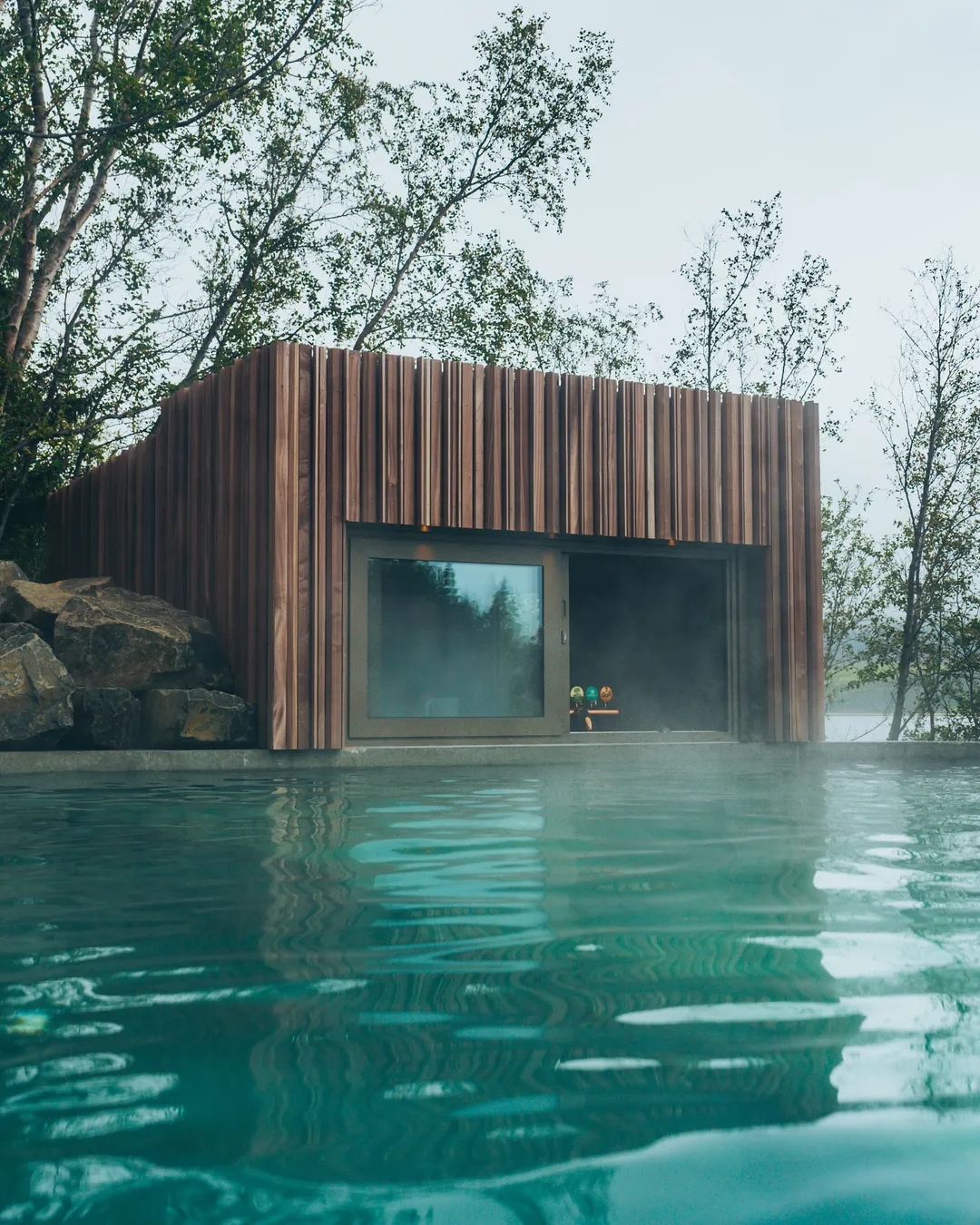 Icelandic wilderness spa with forest views