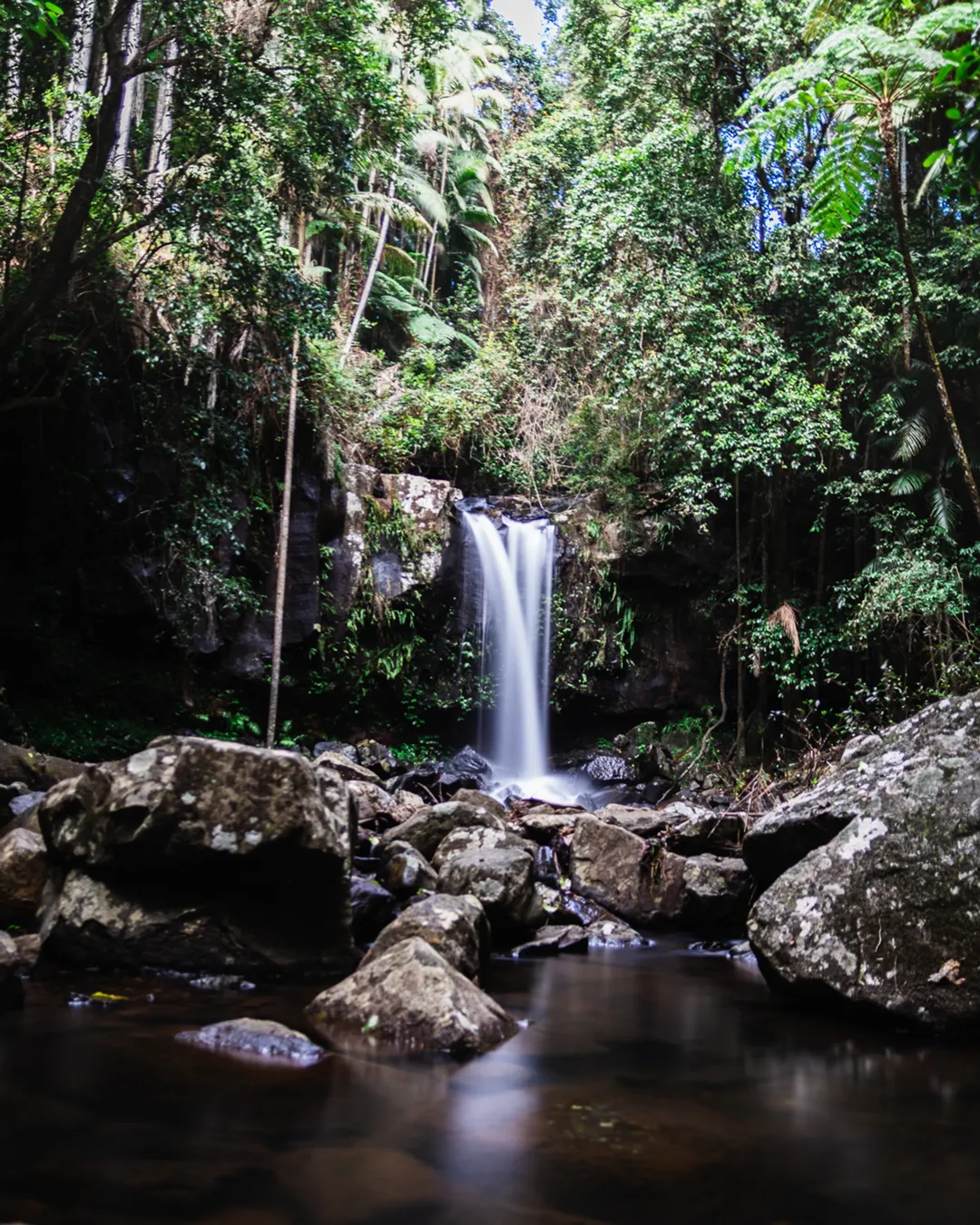 Tranquil waterfall in rainforest setting