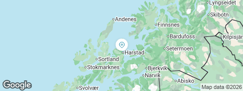 From Harstad, drive approximately 15 kilometers north to the Stornes Ferry Terminal. The drive takes about 10-15 minutes via the RV867 road, which follows the coastline and offers beautiful views along the way. If you're without a car, public transport options such as buses might be available but should be checked in advance.