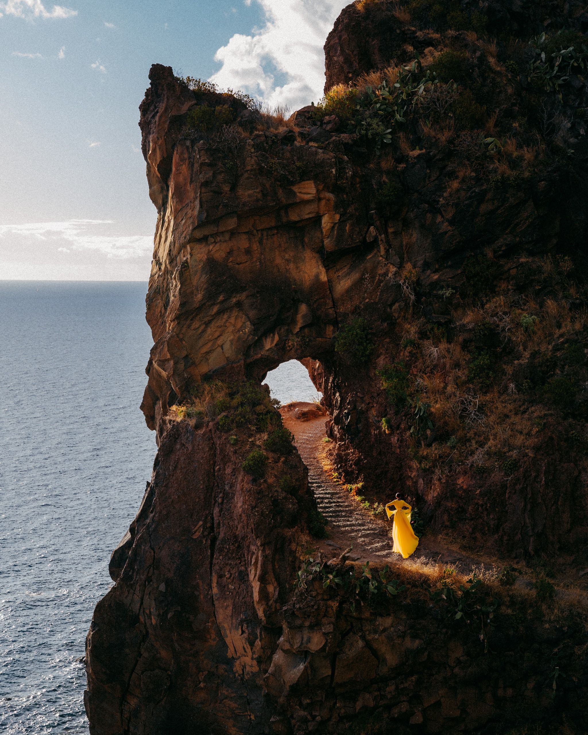 A beautiful backlit landscape view of the coastline cliffs.